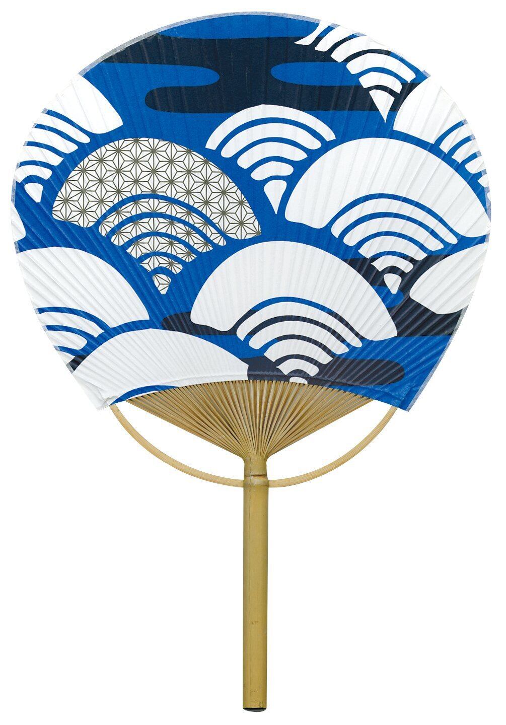 うちわ 麻の葉青海波 青 約28×41cm