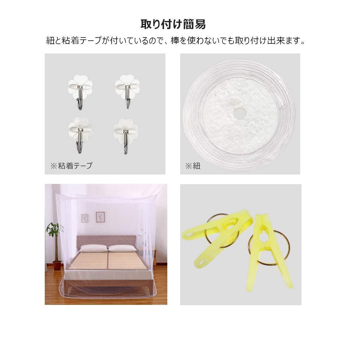 蚊帳 かや 開閉不可 シングル/ダブル用 吊り下げ 蚊帳 虫除け対策 長さ180*200*200cm (白)