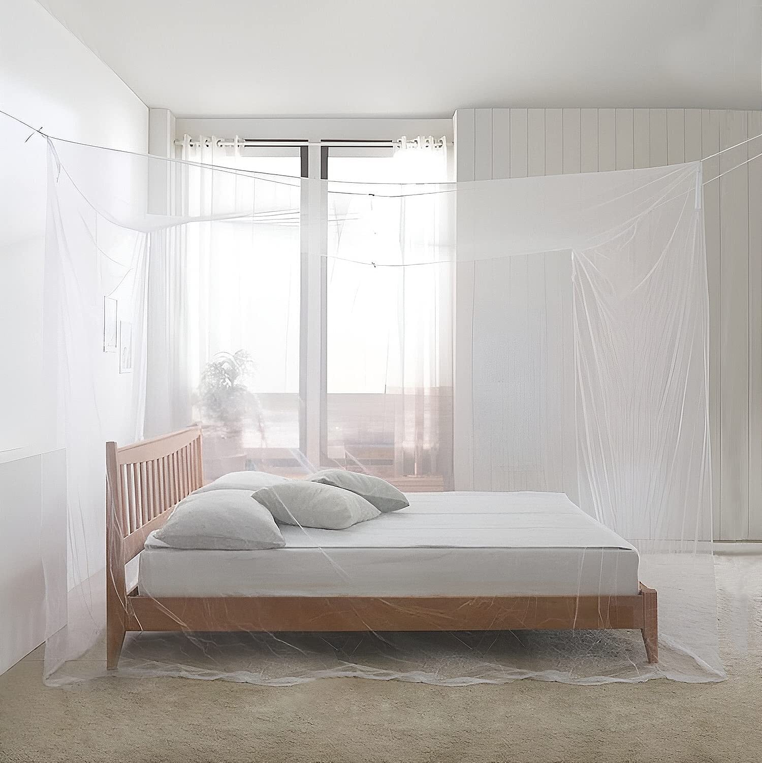 【数量限定】蚊帳 かや 開閉不可 シングル/ダブル用 吊り下げ 蚊帳 虫除け対策 長さ180*200*200cm (白)