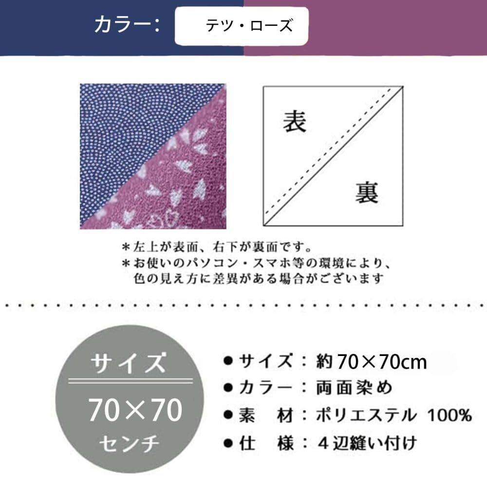 【人気商品】ふろしき 風呂敷 リバーシブル 鮫小紋 桜 ちりめん 両面染め 四面縫製 70cm 二巾 お弁当包み ラッピング ギフト包み 瓶包み 着物お稽古バッグ クロス エコバッグ おしゃれ (テツ/ローズ)