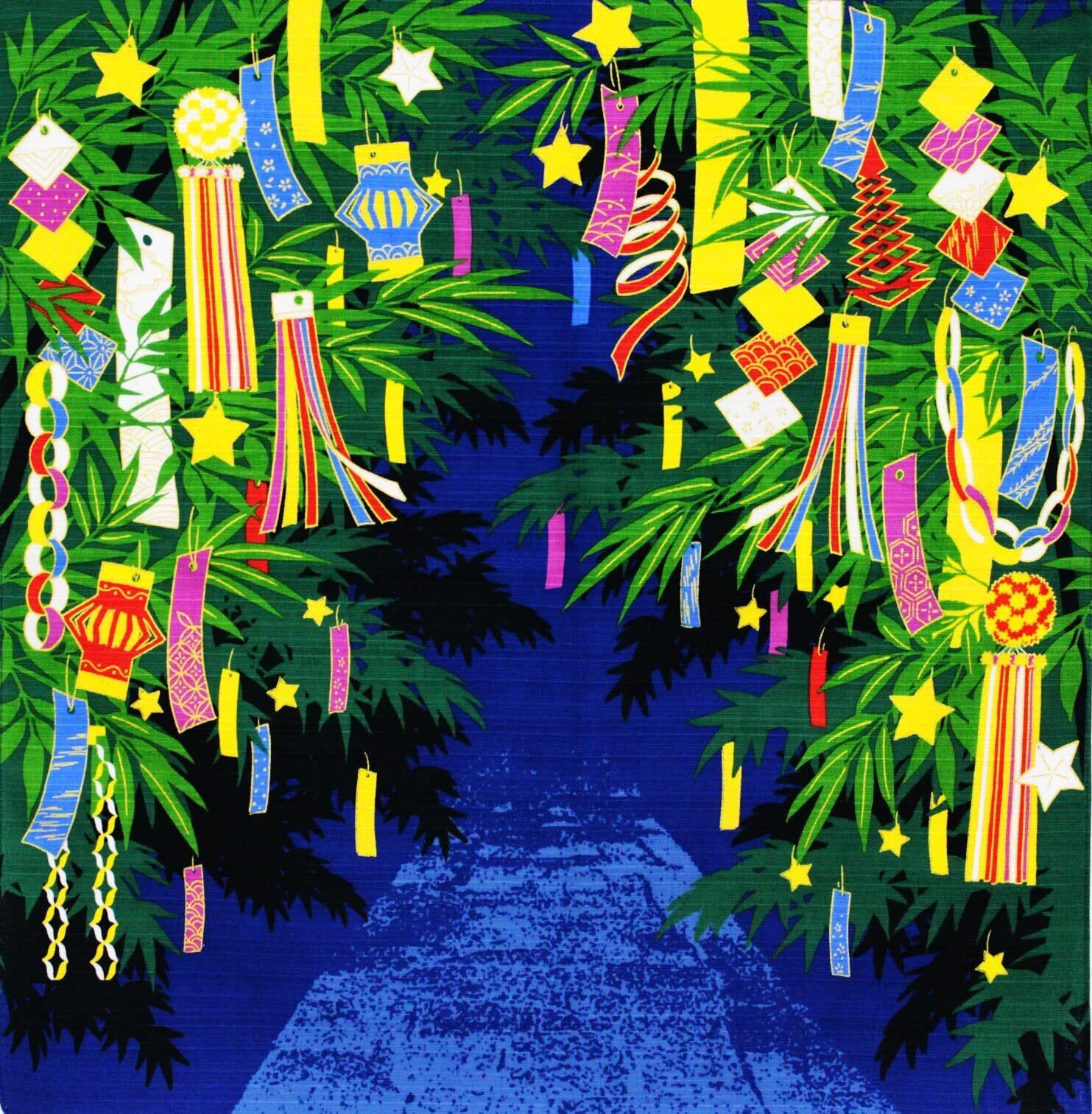 【数量限定】風呂敷 綿風呂敷 七夕飾 ブルー 約50×50cm 日本製 簡単に包める お弁当包み 軽くて便利 国産 コンパクト商品
