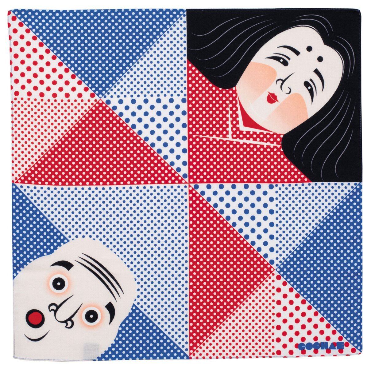 むす美 風呂敷 ふろしき 48cm 福コチャエ おかめ・ひょっとこ (ブルー) 20464-102