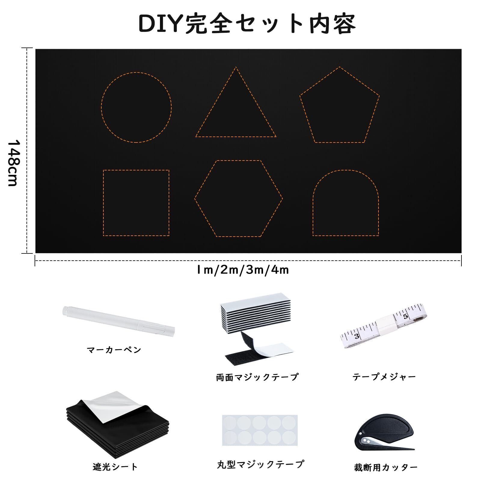 【DIY完全セット・マジックテープ使用で貼付簡単】この目隠しシートは、貼り付けたり取り外したりが簡単で、繰り返し利用もできるマジックテープを採用しており、ご使用に大変便利です。また、本商品は①高性能遮光シート、②丸型マジックテープ、③四角マジックテープ、④白いマークペン、⑤カッター、⑥テープメジャーなど必要なツールが揃ったコンプリートセットで、誰でも簡単に自宅の窓に遮光シートを貼り付けることができ、プライバシーを守りながらインテリアを自由にアレンジできます。