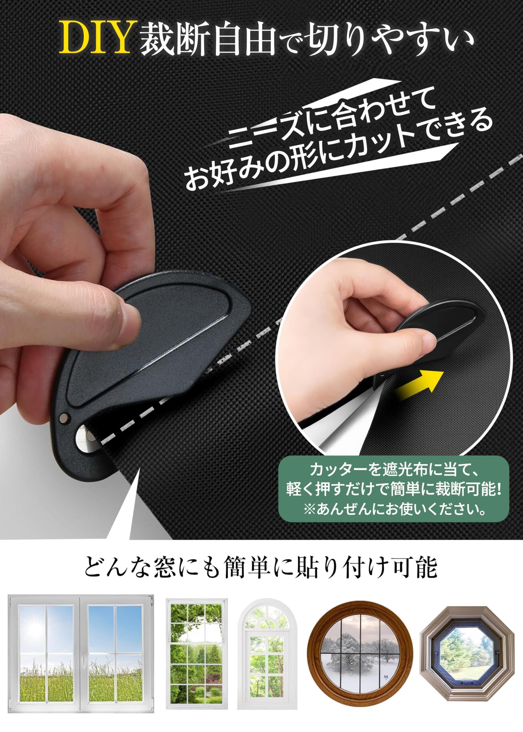 【表面防水加工実施・裁断自由の切りやすい素材】汚れや水滴がサッと拭き取れます。窓のサイズを測って、必要な分だけ裁断したら何度も繰り返し使えます。窓の形に合わせてカットしてカーテンよりスペース取らず、簡単に目隠しできます。子供部屋や、寝室などの自宅だけでなく、保育園や幼稚園、オフィスや車内などの窓にテープで貼り付けるUVカット防水遮光シートです。プライバシー保護や睡眠の質向上にも役立ちます。