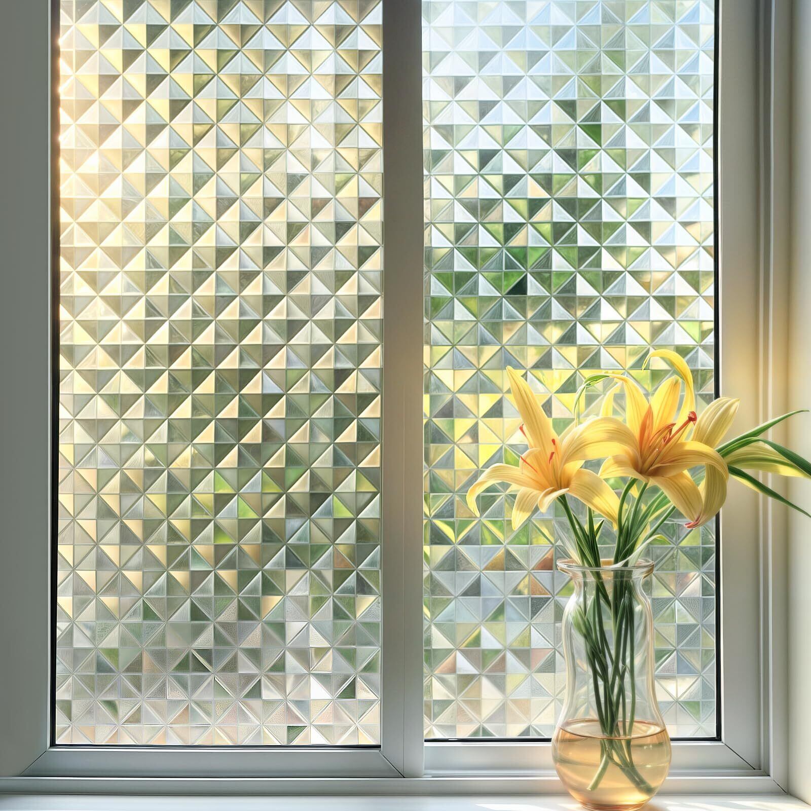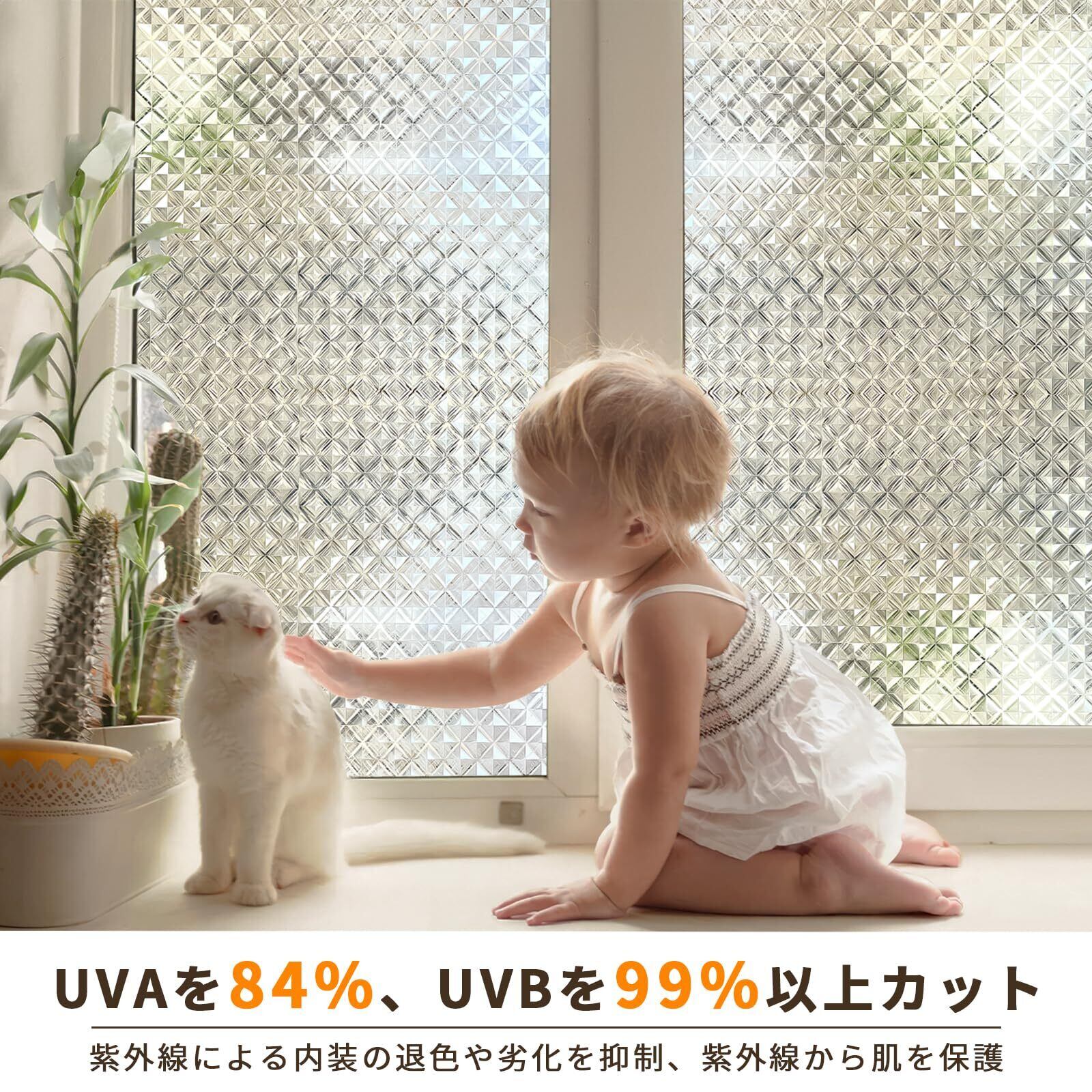 DUOFIRE 窓ガラスフィルム 目隠し シート 3D 正方形 ガラスフィルム 窓用フィルム 窓 水貼り 剥がせる 断熱 遮熱 UV 紫外線カット 結露防止 玄関 目隠し窓シート おしゃれ 飛散防止 半透明 (30x200cm)