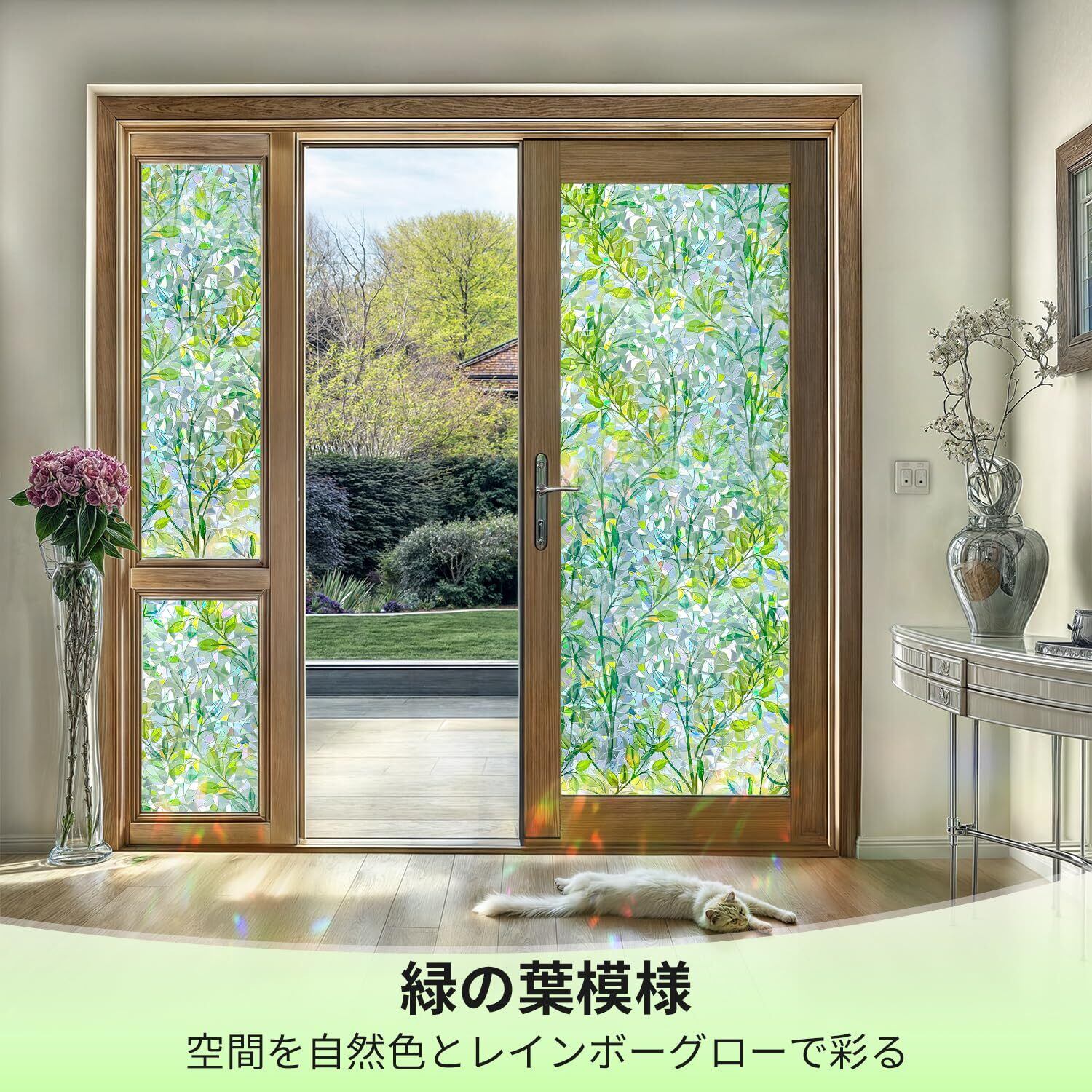 【在庫処分】DUOFIRE 窓ガラス目隠しフィルム 目隠しシート 窓 フィルム 水で貼る 剥がせる 断熱遮熱 結露防止 uvカット 窓 めかくしシート ガラス 窓用 フィルム 浴室 風呂 玄関 飛散防止 ガラスフィルム (えだは柄 44.3x200cm)