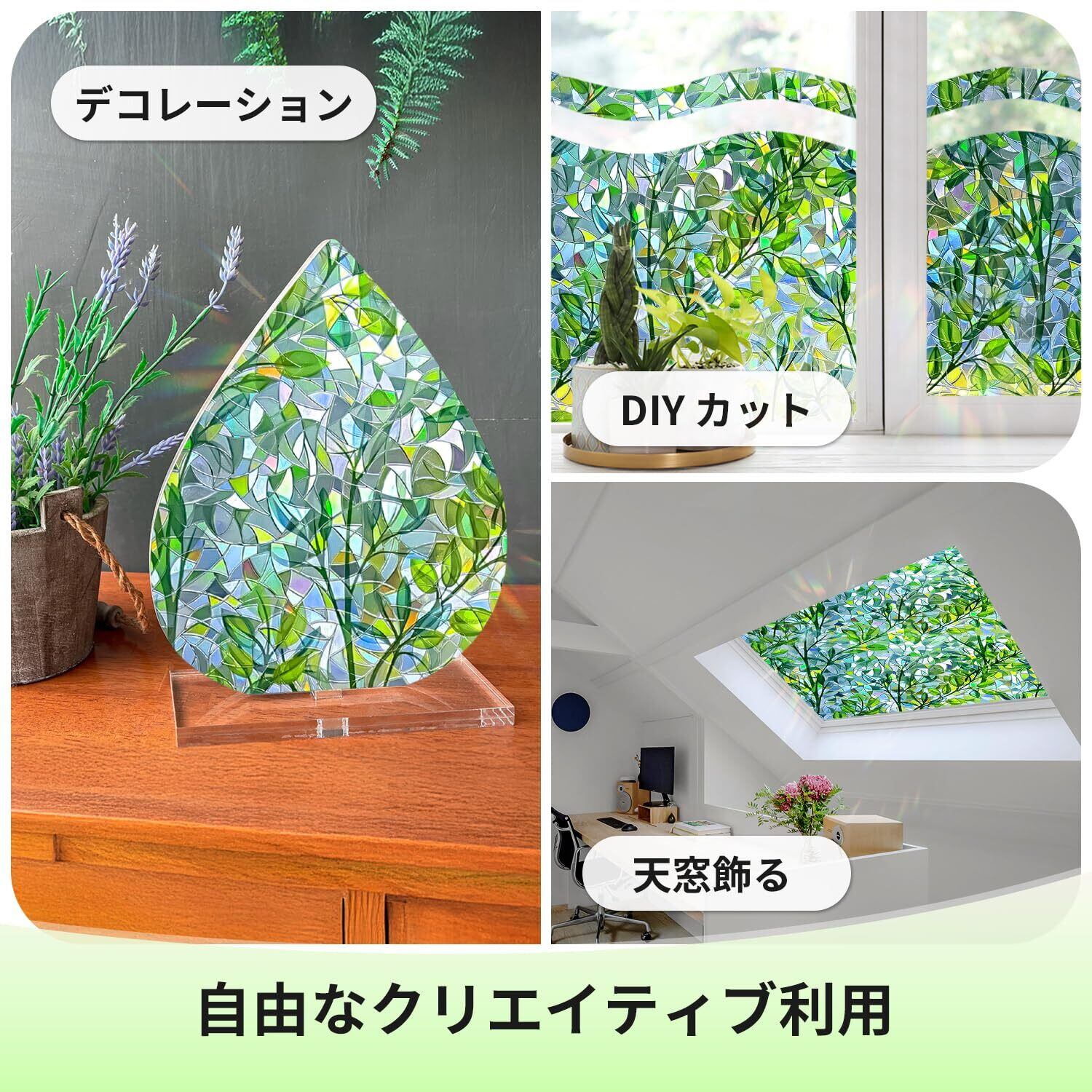 【適用場所】表面が滑らかなガラスであれば、オフィス、窓、引き戸、テーブルなどに全て適用します。レンタルオフィスに最適です。(ほとんどの接着剤に人間の体に有害な化学物質が入っています)。また、こちらのガラスフィルムはカットや組合せも可能なので、どんなサイズのガラスにも合わせやすいです。