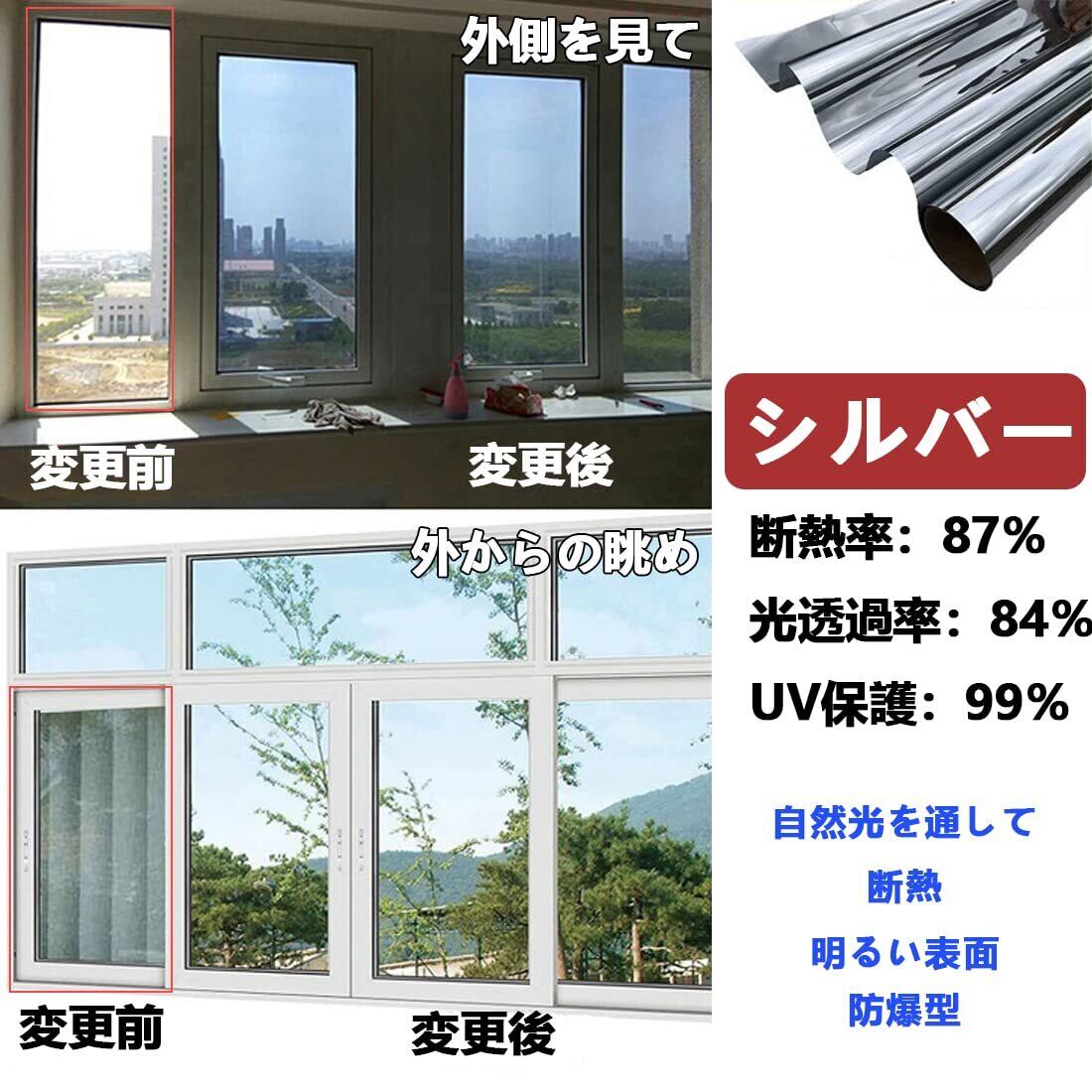 【特価セール】窓用フィルム 目隠しシート 断熱 遮光 UVカット 海 バルコニー 浴室窓用フィルム 外から見えない グラデーション ブラインド おしゃれ マジックミラー サンフィルム 建築用膜 ガラス飛散防止シート ガラス防爆フィルム 日よけ 防犯フィルム(シルバー 90*200cm)