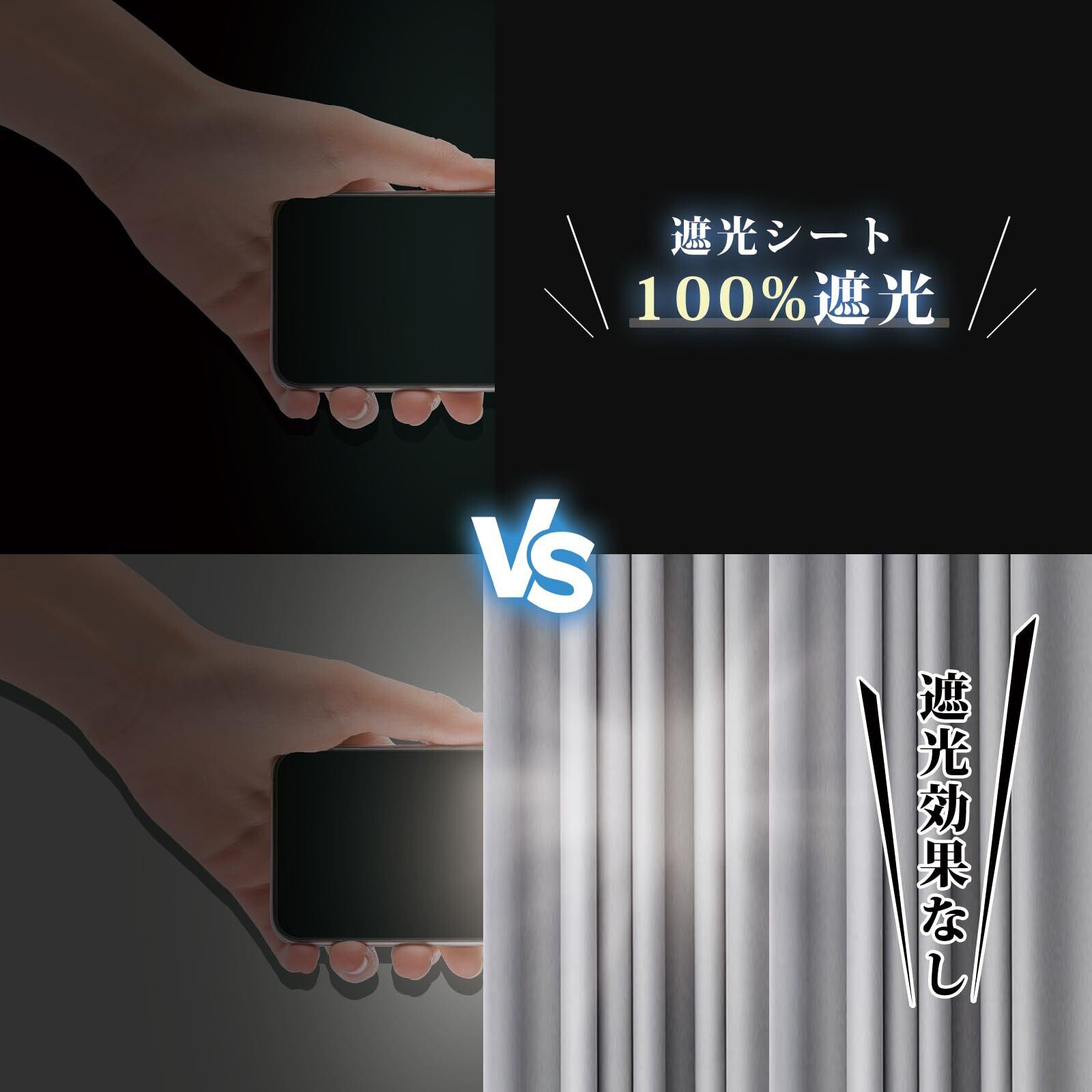 【遮光・断熱・防水・UVカット・省エネ効果】新型遮光シート、日傘と同じ材質、正面は420Dオックスフォード布、裏面はコーティング層です。遮光、断熱、防水とUVカットの機能を一体化しています。100%遮光率、目隠し効果抜群! 夏は熱を遮断し、冬は暖房効果を高めることで、エアコンの使用量を抑え、エネルギー消費を削減できます。紫外線を遮断することで、家具や床、カーテンなどの日焼けや色あせを防ぎます