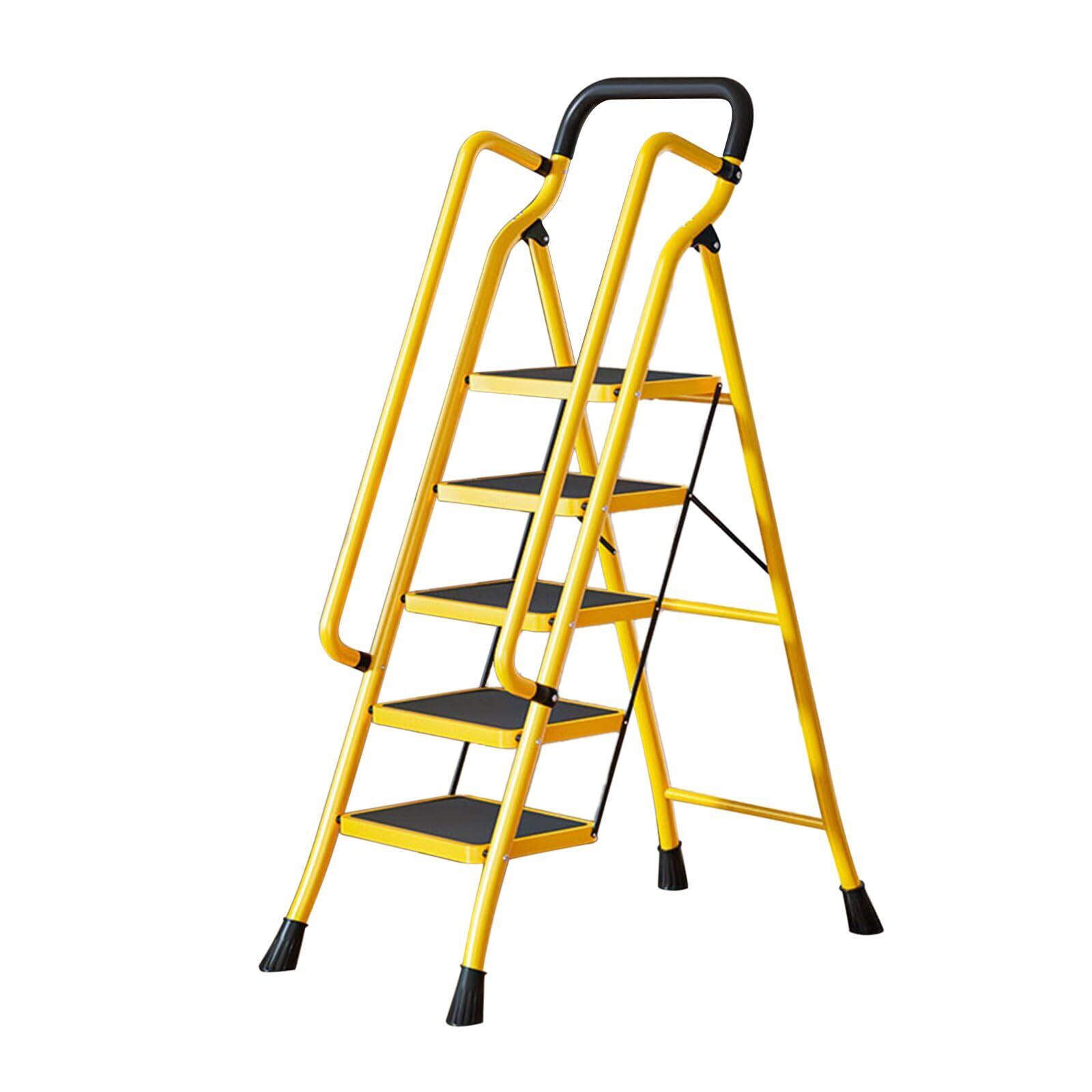 【在庫処分】脚立 折りたたみ 持ち手付き 踏み台 ステップスツール 2段/3段/4段/5段 鉄素材 耐荷重150㎏ ワイドペダル 頑丈 引っ越し 掃除 電球の取替に エアコン掃除に 滑り止め付き 多機能 室内 屋外 折りたたみ式はしご (5段(ハンドル付き))