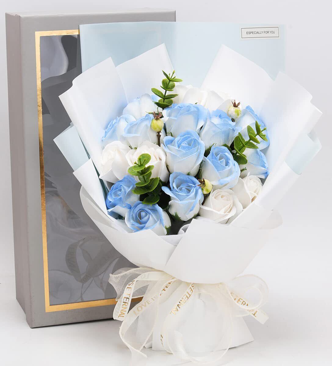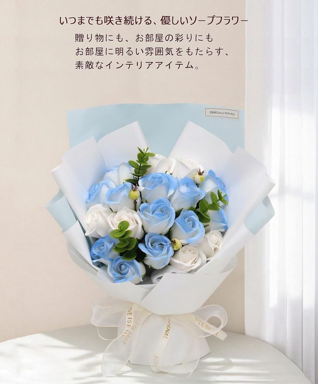【人気商品】ソープフラワー花束 母の日プレゼント, 誕生日プレゼント ソープフラワー バラ グラデーション 花束 ブーケバラ 女性 人気ギフトインテリア 結婚記念日 敬老の日 彼女 退職感謝 お礼 ローズブーケ プレゼントブルー