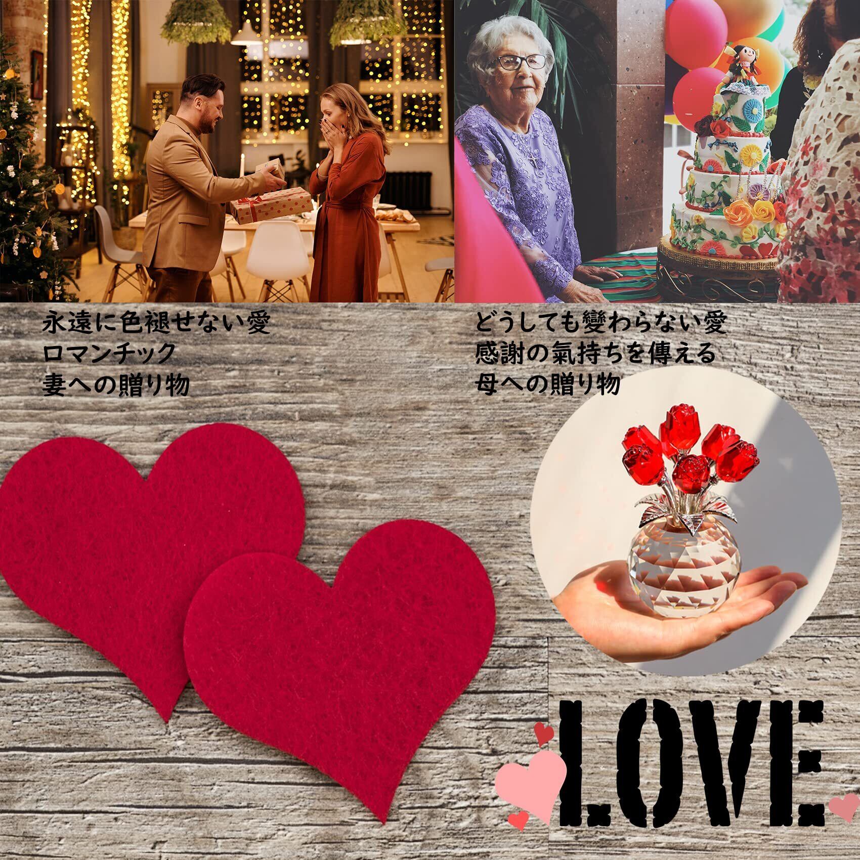 【細かい製造】高品質透明感のあるK9クリスタルで細かく研磨された枯れないバラの花束は、繊細な質感を持っており、ローズの高級感と美しさが感じられます。葉との枝は鍍銀製で、色は明るく、風合いは自然であり。暖かくて鮮やかな色合いと雰囲気を長い間お楽しみいただけます。