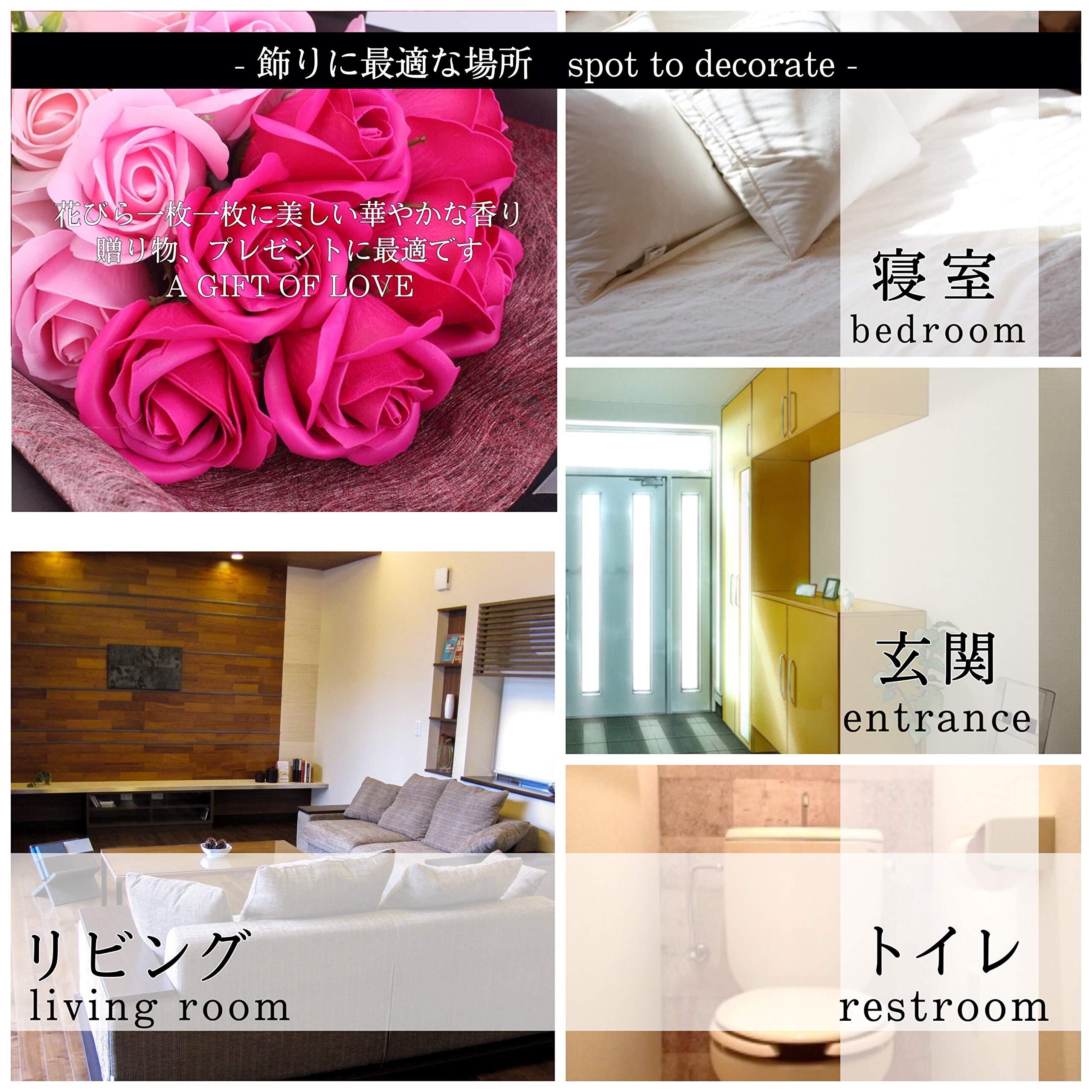 【鑑賞用・プレゼントに】薔薇の生花と変わらない大きさでブリザードフラワーやドライフラワーと異なり、花びら一枚一枚が華やかな香りのする石鹸素材で作られているため、枯れることがなく、観賞用・ギフト・プレゼントに最適な花束です。上品で高級感があり、またロマンチックな商品なため、女性への誕生日など大切な思い出のプレゼントにいかがでしょうか。 大切な方とこのソープフラワーの香りを楽しんでみてください。