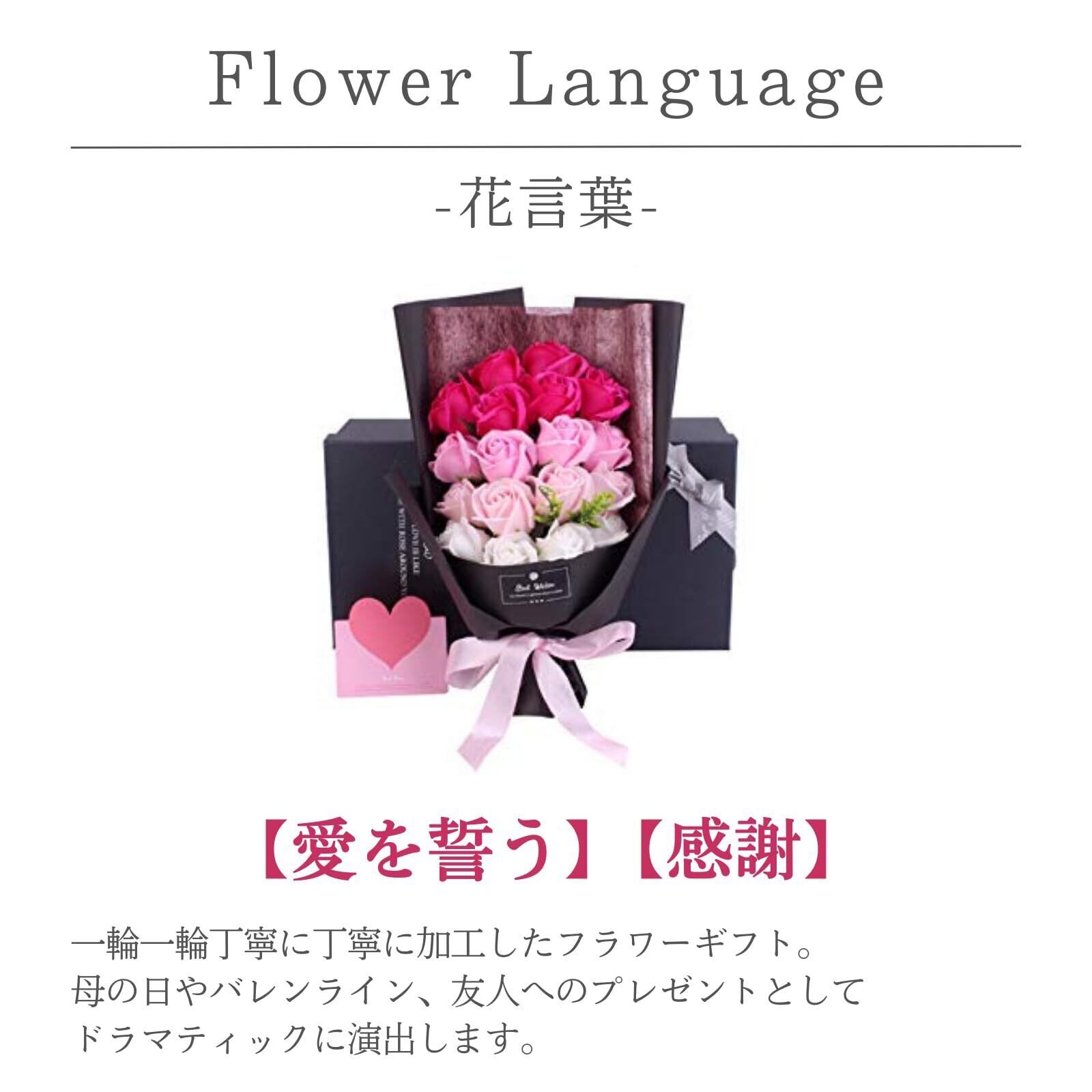 18pieces ソープフラワー 花束 結婚記念日 結婚祝い クリスマス 薔薇 プレゼント ギフト 造花 花 誕生日 還暦 母の日 父の日 メッセージカード ショップバッグ付 (Pink Gradation)