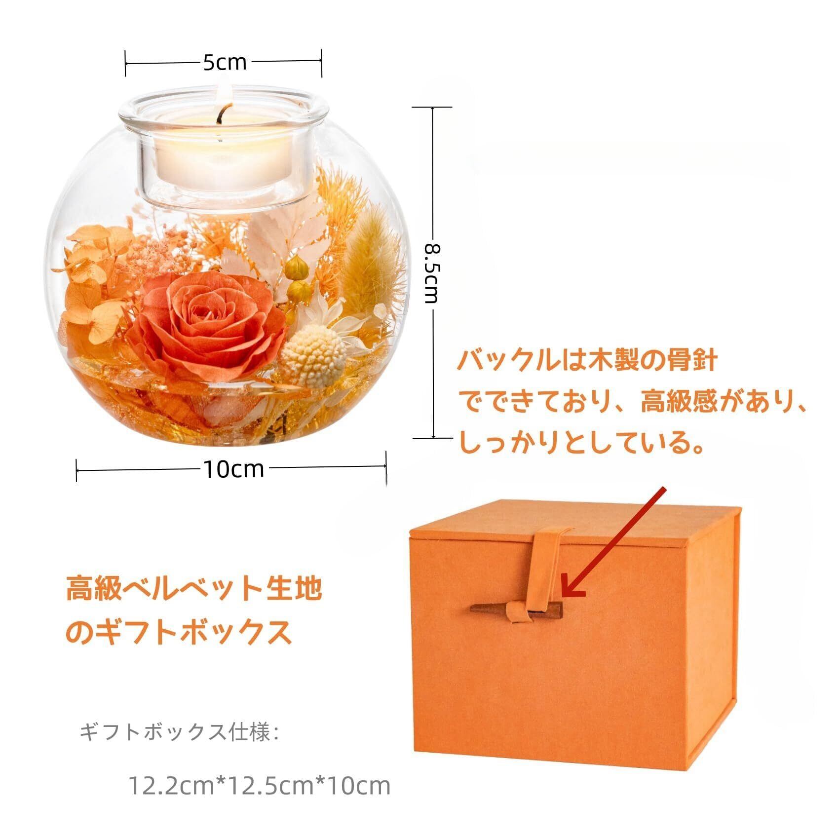 プリザーブドフラワーギフト キャンドルホルダー 枯れない花 誕生日プレゼント女性 ゼント人気 お母さんに贈り物 ギフト女友達 ボーイフレンド 彼女 母 かわいい 記念日 誕生日 還暦祝い 退職祝い バラ ギフト引越し祝い 入学 卒業 結婚祝い 敬老の日家庭装飾 雰囲気作り (オレンジ (キャンドルセット付属))