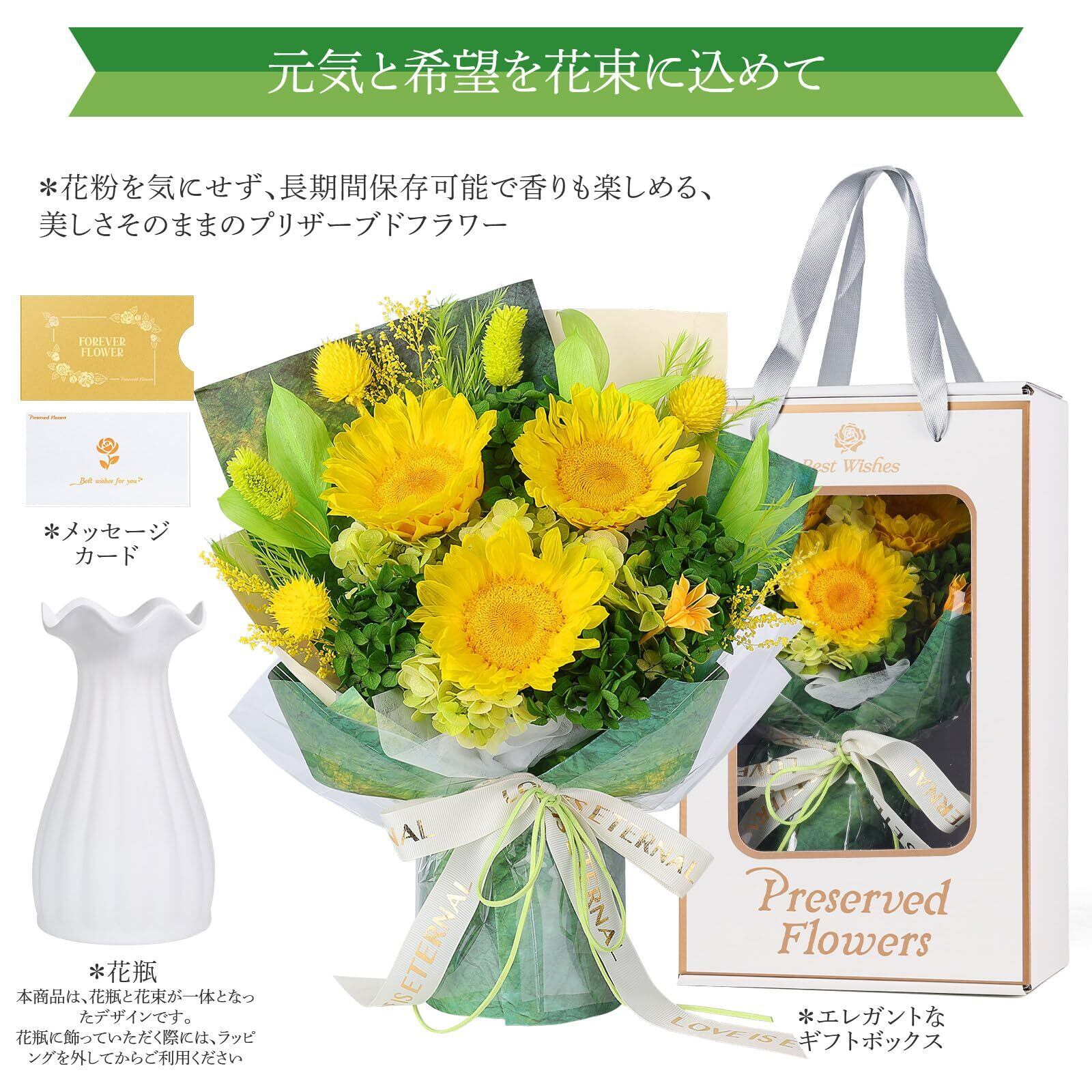 プリザーブドフラワー ひまわり3本 花束 黄色 香りあり 花瓶付き 枯れない花 誕生日 人気 プレゼント 傘寿 米寿 退職 お祝い お見舞い ギフト 卒業式 人気 ブーケ