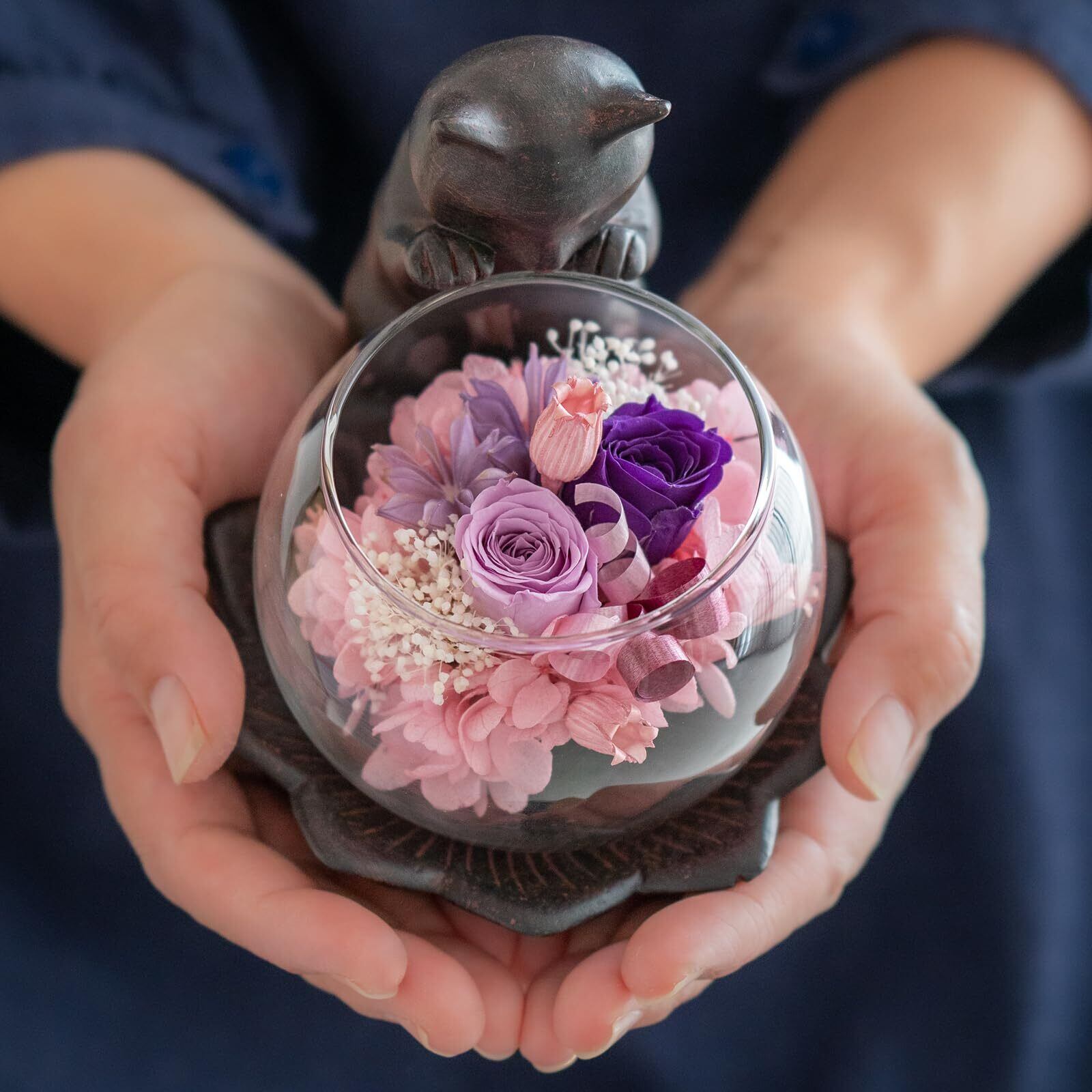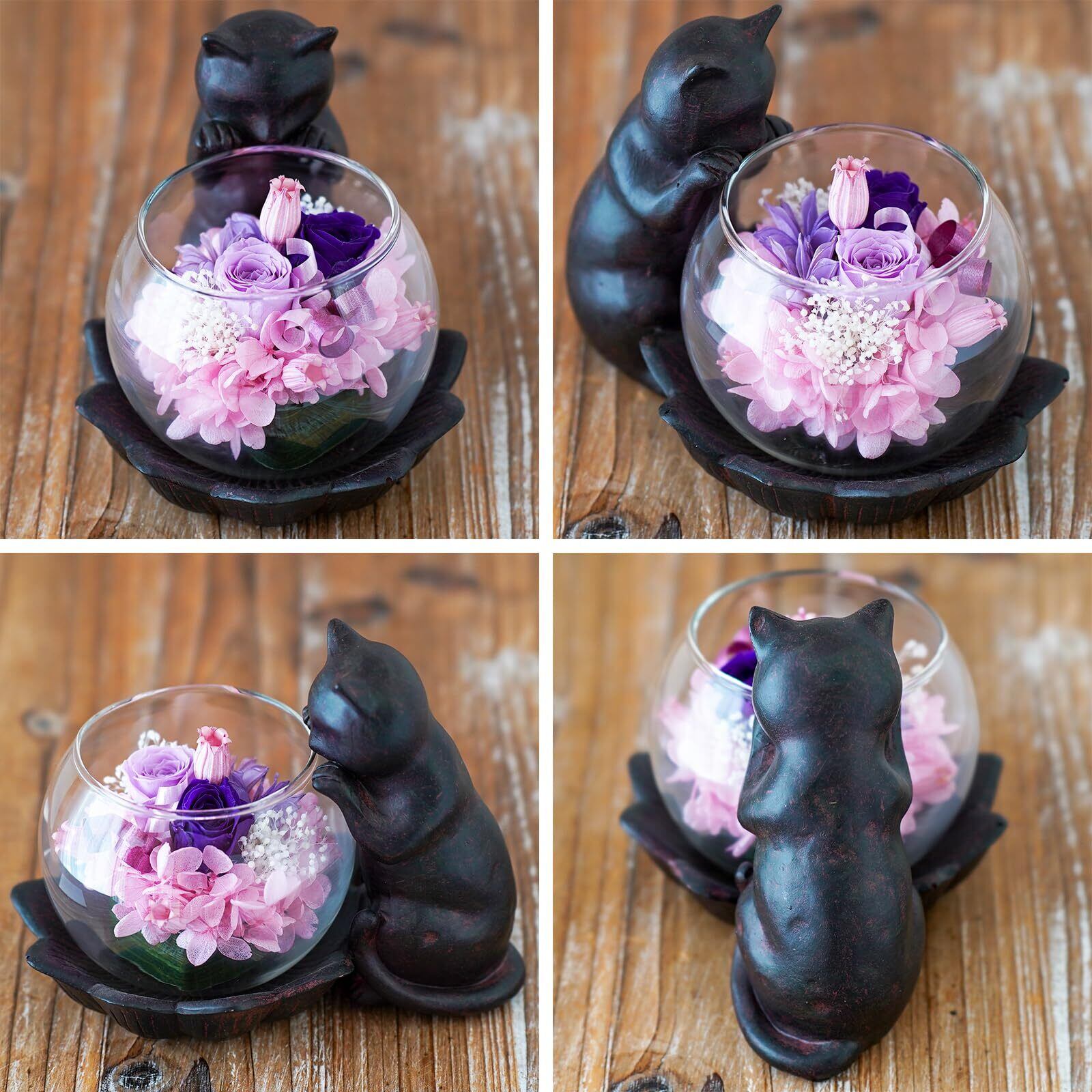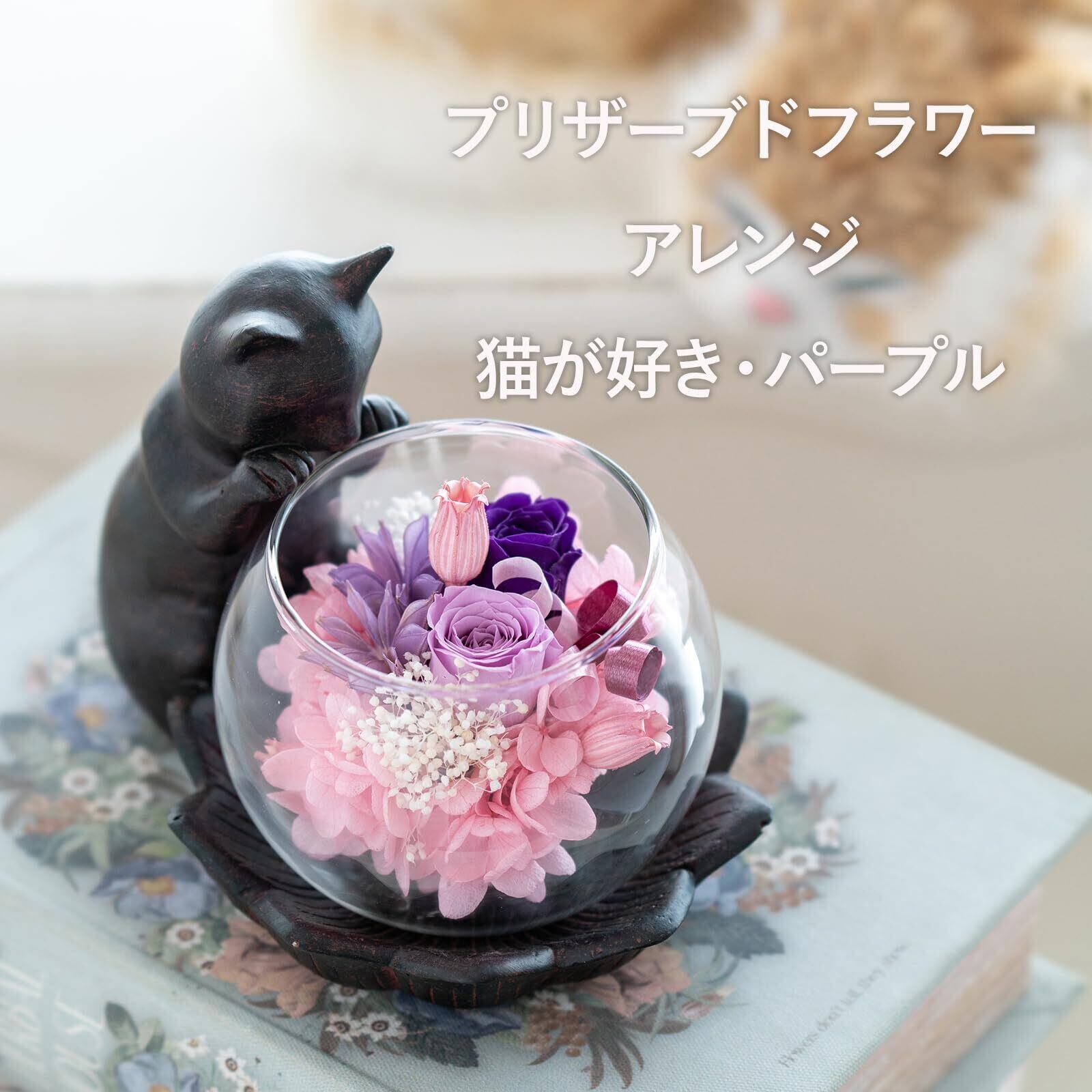 プリザーブドフラワー バラ 誕生日プレゼント 女性 人気 喜寿 お祝い 退職祝い ギフト 猫モチーフ (猫が好き パープル)