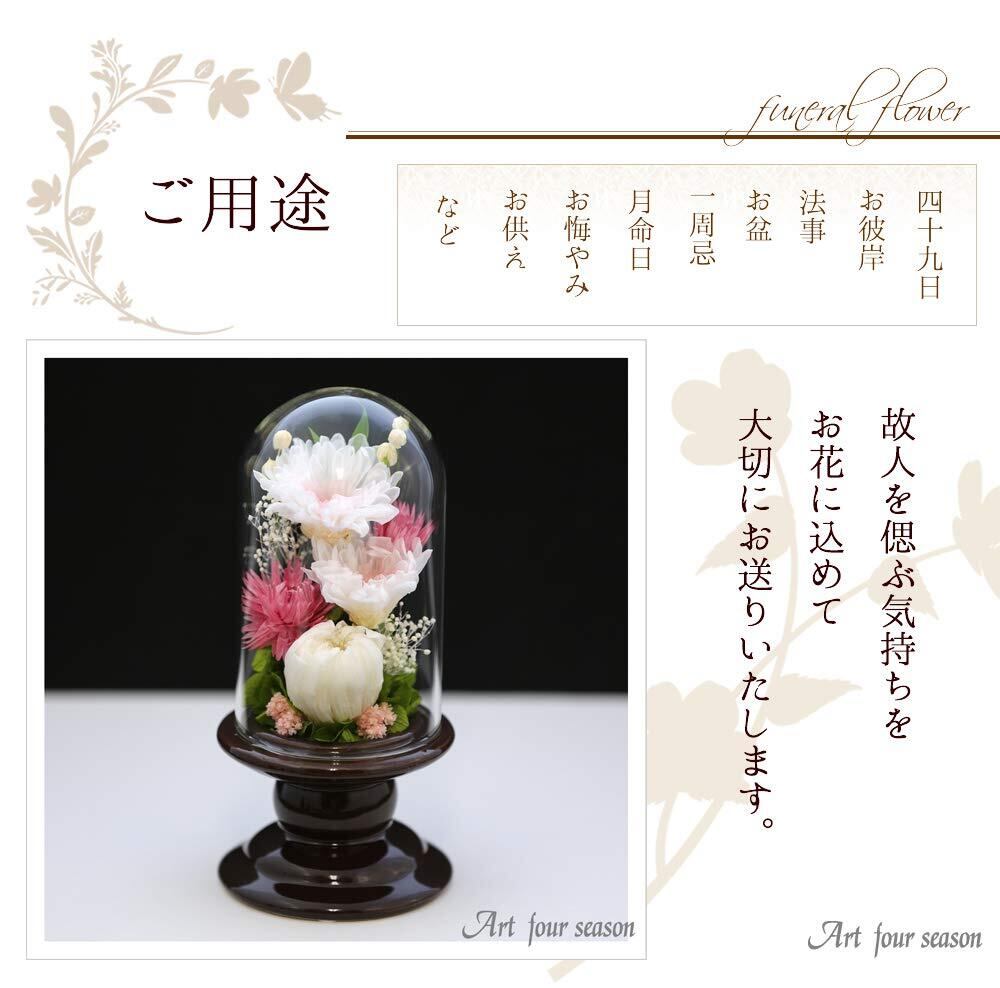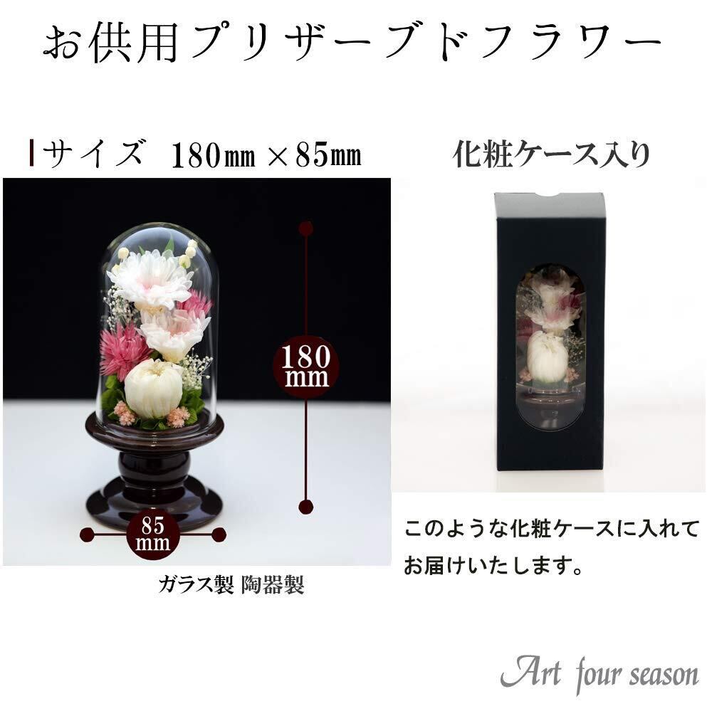新品プリザーブドフラワーお供え花 仏花 お花に水やりは必要ありません。 生花に特殊な加工を施してオーガニック等で染色し、 柔らかな質感と自然にはない鮮やかな色合いと雰囲気を 長い間お楽しみいただけるようにしたお花です。トゲのあるお花やフェイクは使用しておりません。