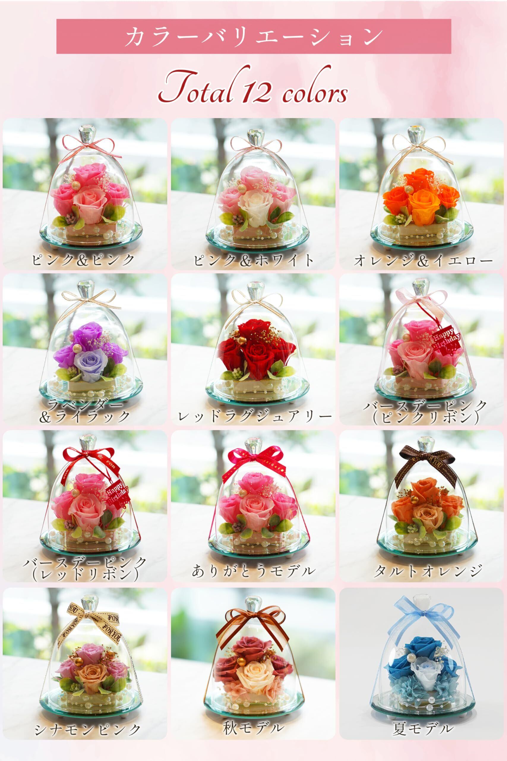 【2022最新】IPFA プリザーブドフラワー ガラスドーム エレガンス プレミアム(ピンク&ピンク)誕生日 結婚祝い 結婚記念日 退職祝い プレゼント ギフト 人気 女性 花 バラ お祝い 記念日