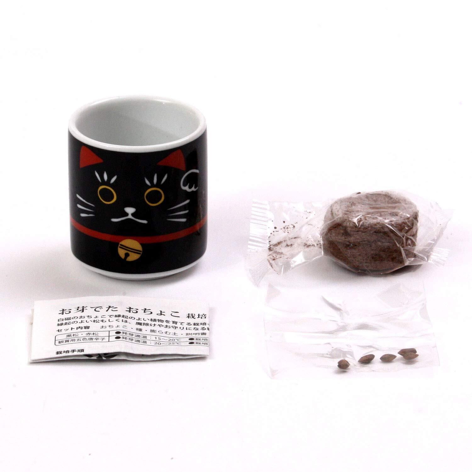 「招き猫」のおちょこで縁起のよい黒松を育てる栽培セット