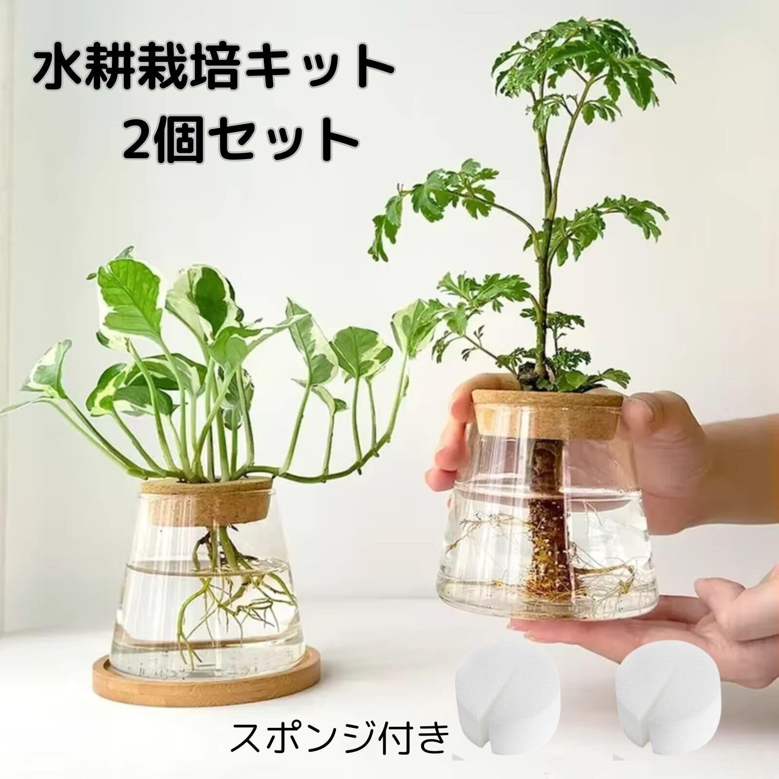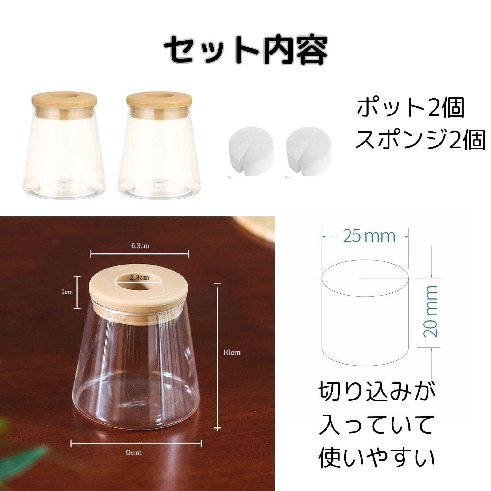 【栽培方法】水のみでの栽培、ハイドロボールなどを利用しての栽培どちらにもお使いいただけます。切り込みの入ったスポンジが付属しますので、ポットの口で植物がぐらつくのを防ぎます。