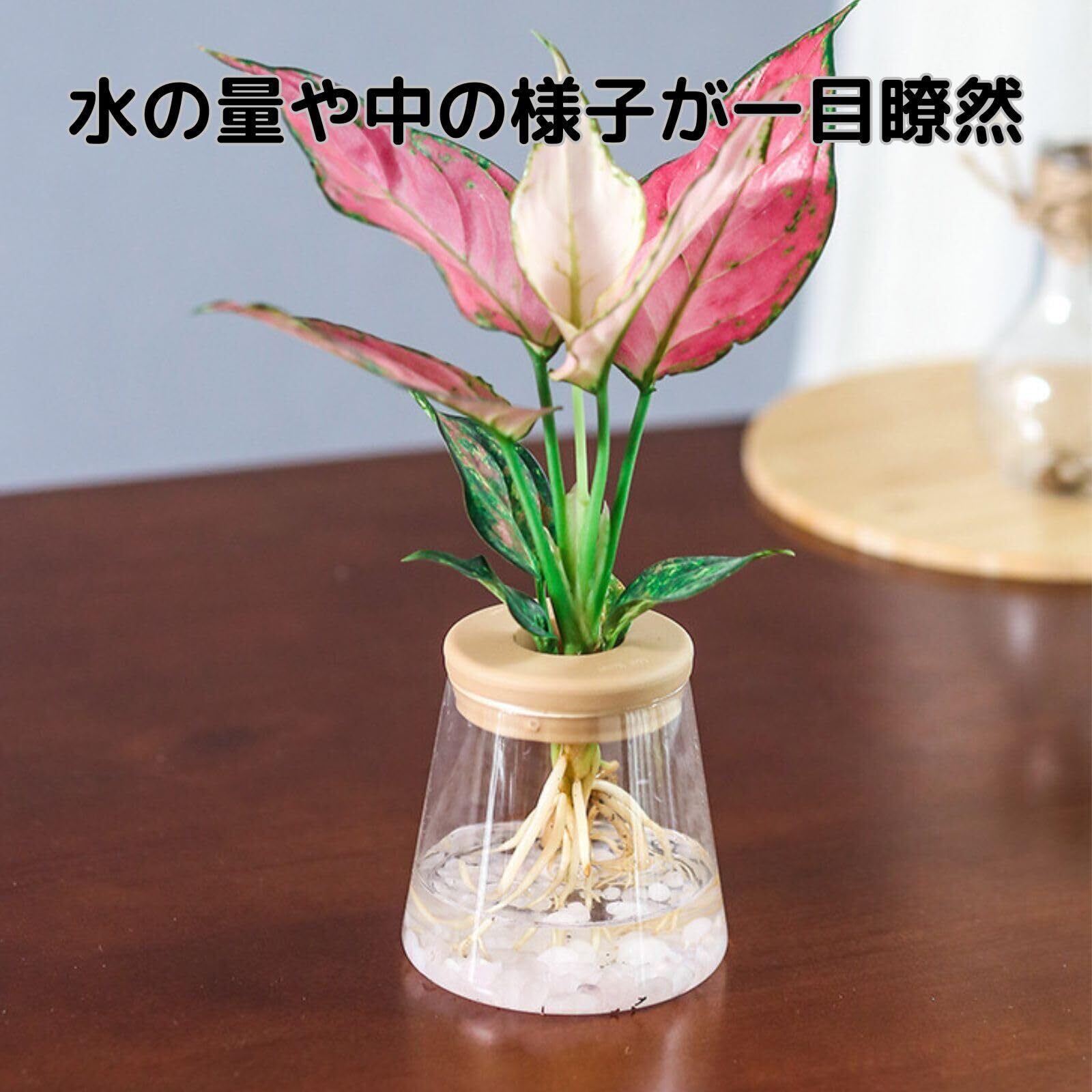 【透明ポット】土の有機物が原因のコバエなどが出にくく、透明のポットは水の状態が一目でわかり管理がしやすいので初心者様にもおすすめです。