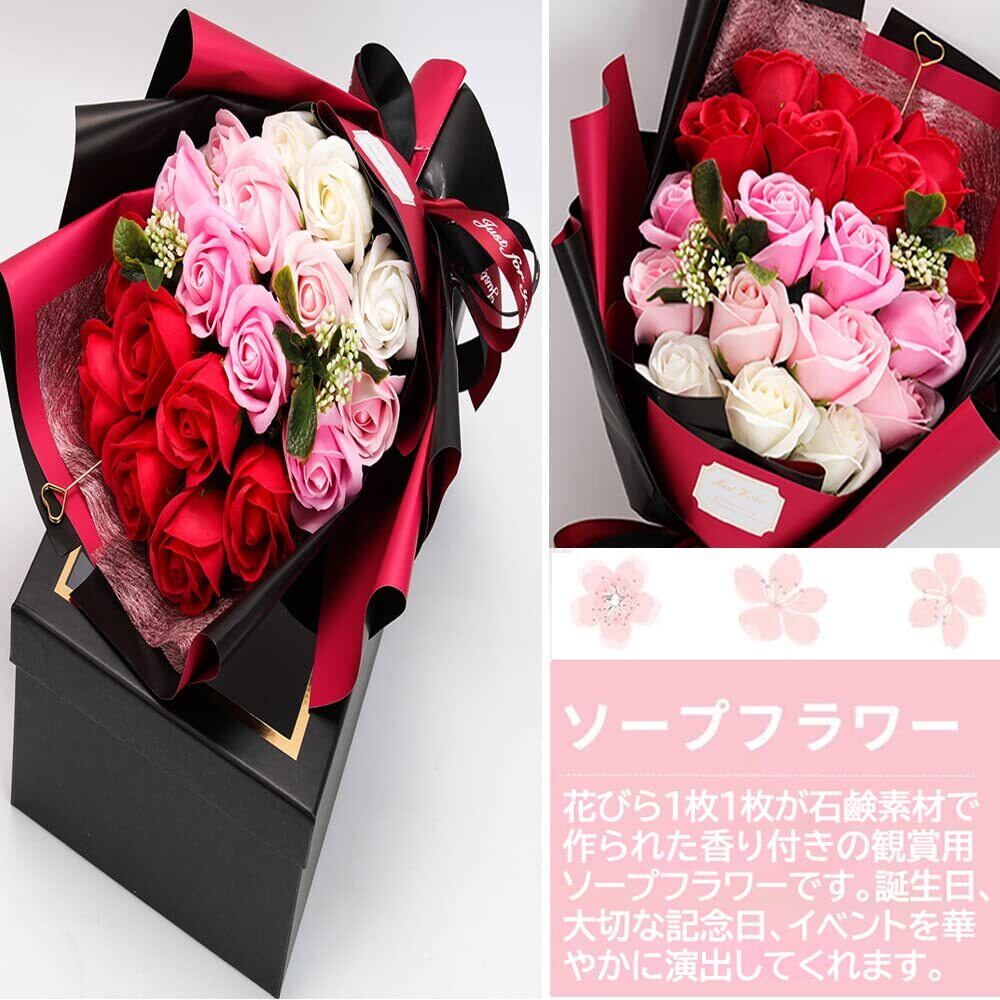 【特価セール】ソープフラワー花束 母の日プレゼント, 誕生日プレゼント ソープフラワー バラ グラデーション バラ花束 ブーケ 薔薇造花 女性 人気ギフトインテリア 結婚記念日 父の日 敬老の日 昇進 転居 彼女 送別会 退職 感謝 お礼 ローズブーケ赤