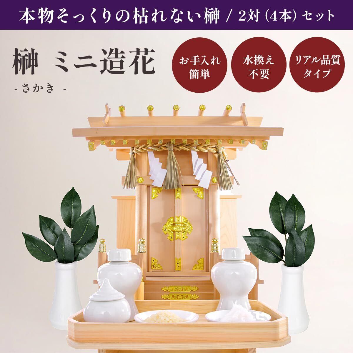 【2022最新】枯れない榊 (さかき) ミニ 造花 リアル品質タイプ 二対 (4個セット)