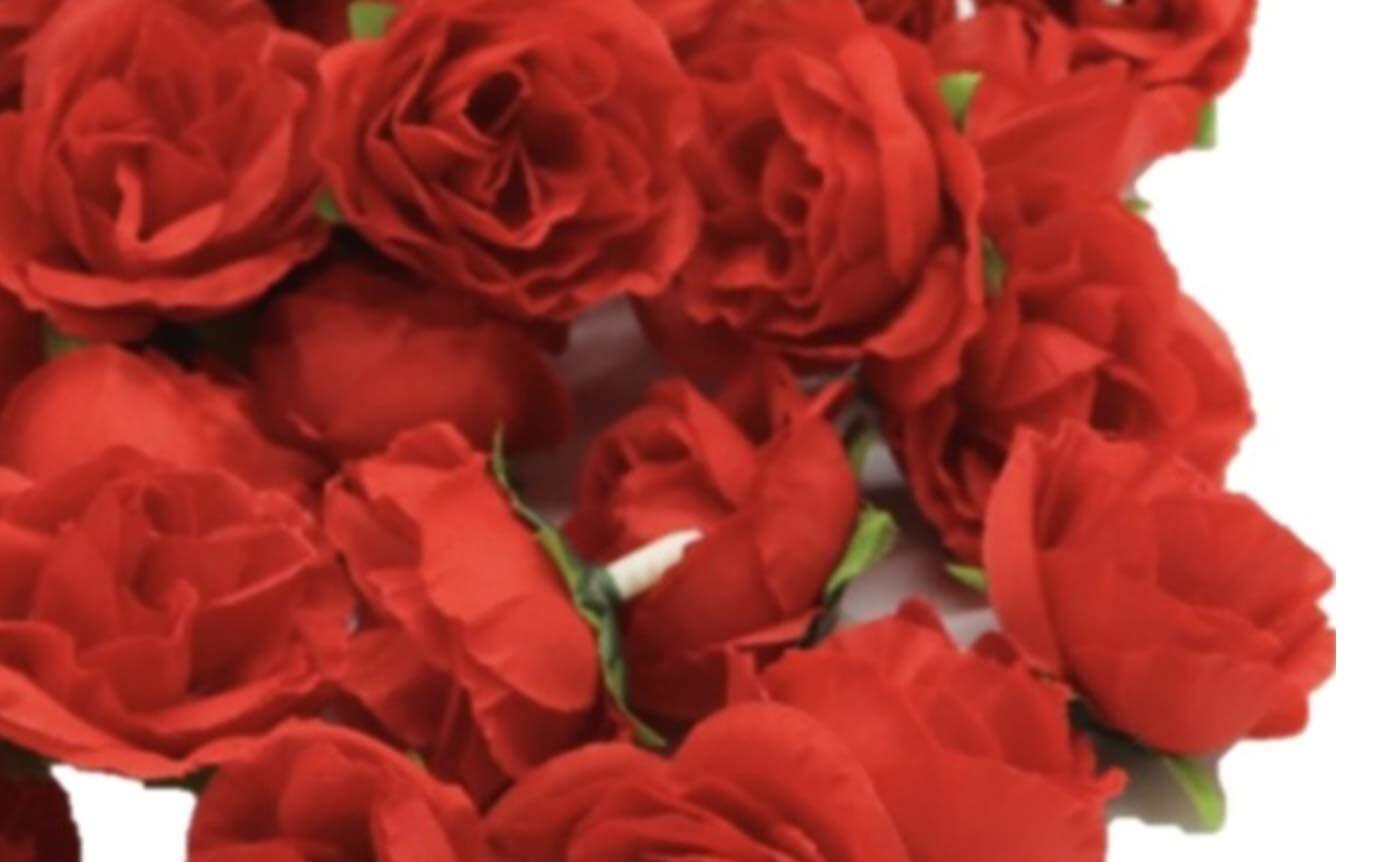 直径3cmの鮮やかな色の赤いミニバラが50個入ったセットです。