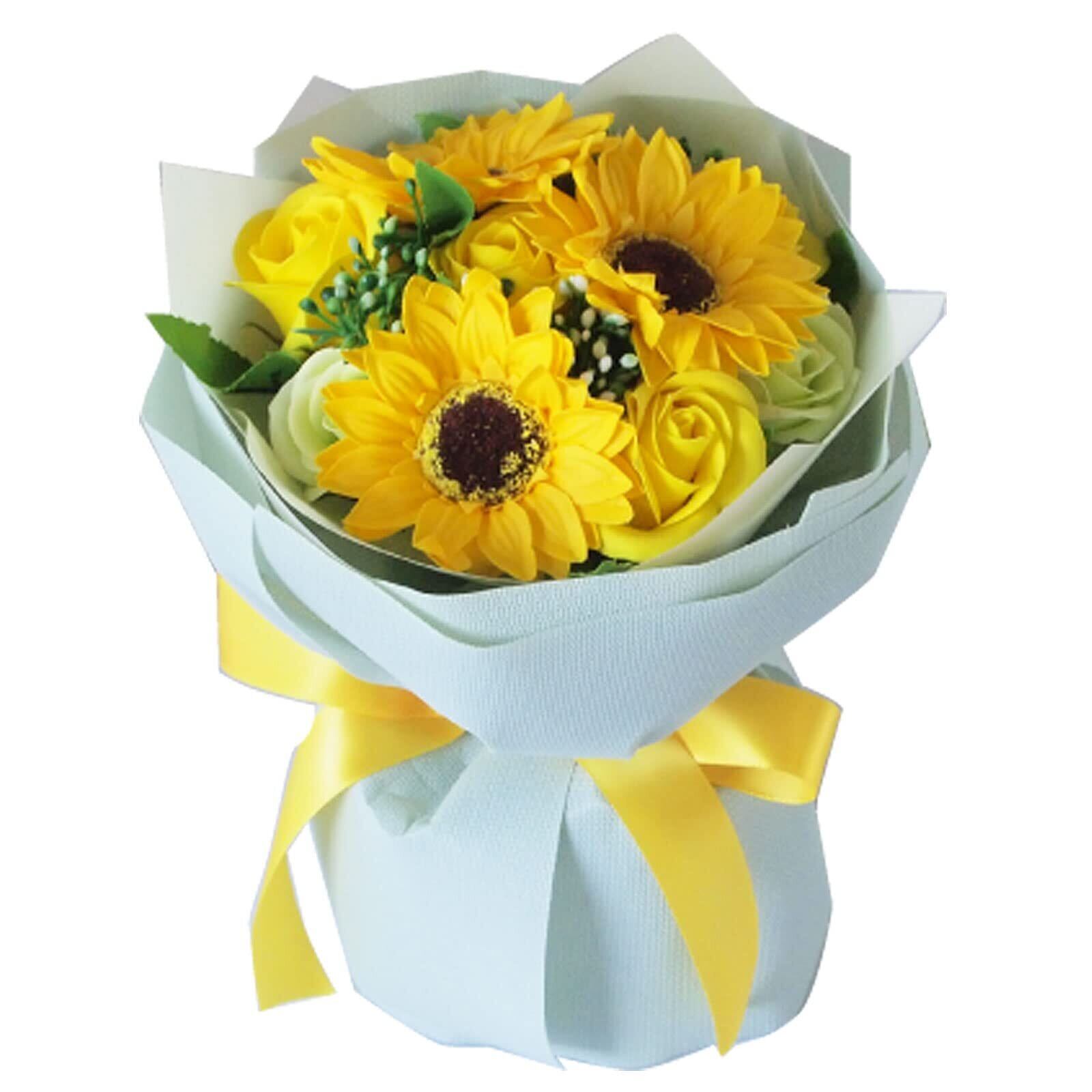 【人気商品】彩香 ソープフラワー スタンディング ブーケ 母の日 ギフト ひまわり ローズ 花束 プレゼント 造花 卒業祝い 退職祝い 誕生日 父の日 (イエロー)