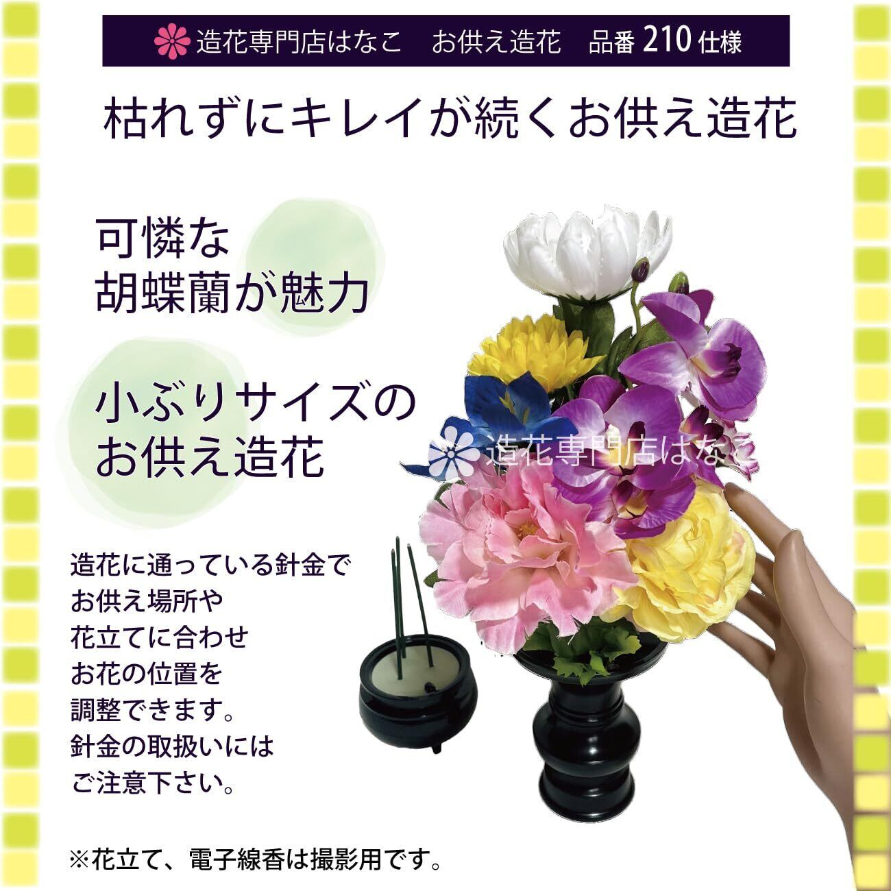 造花専門店はなこオリジナル 仏花_墓花 2束組、ミニ茎シート2枚付です