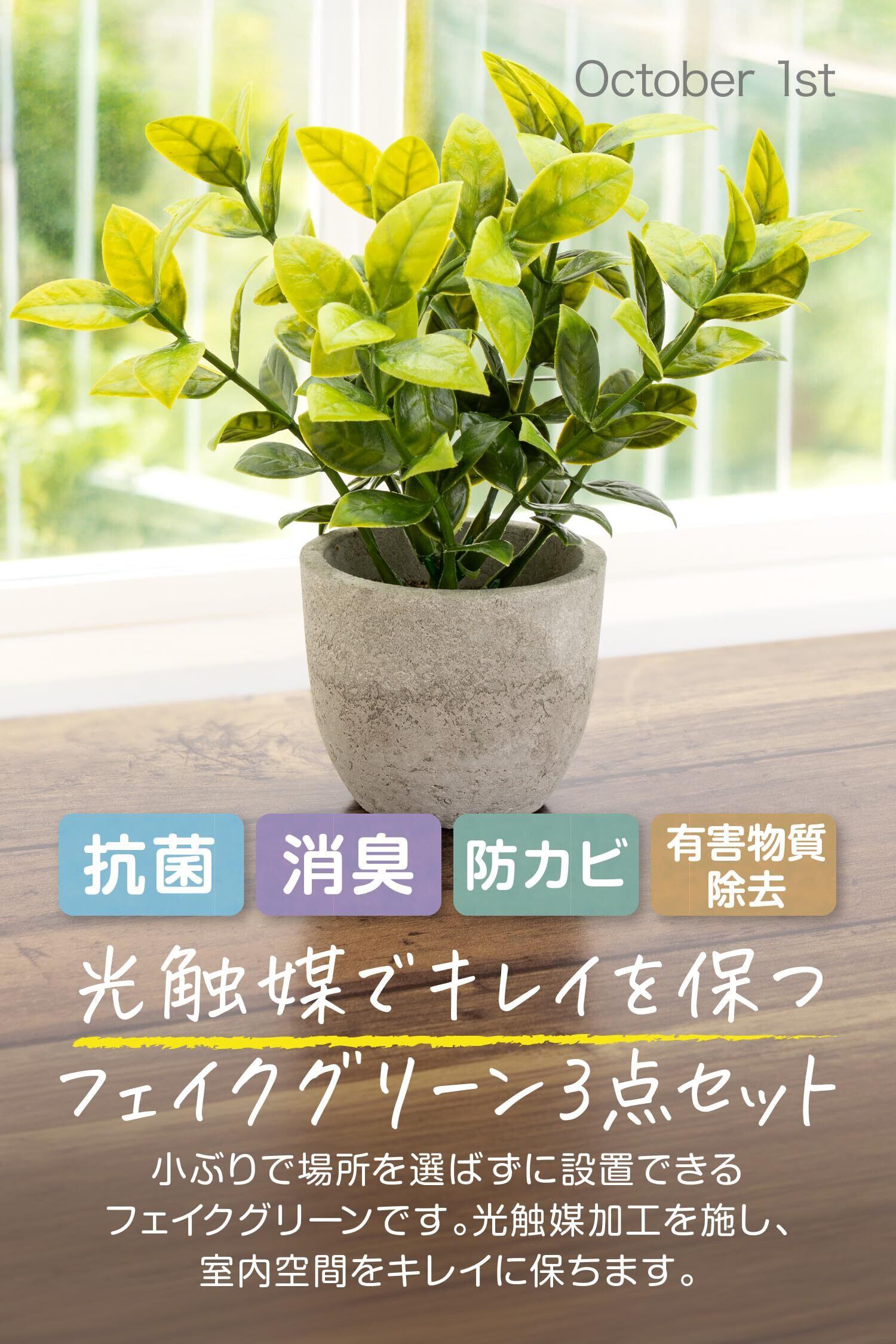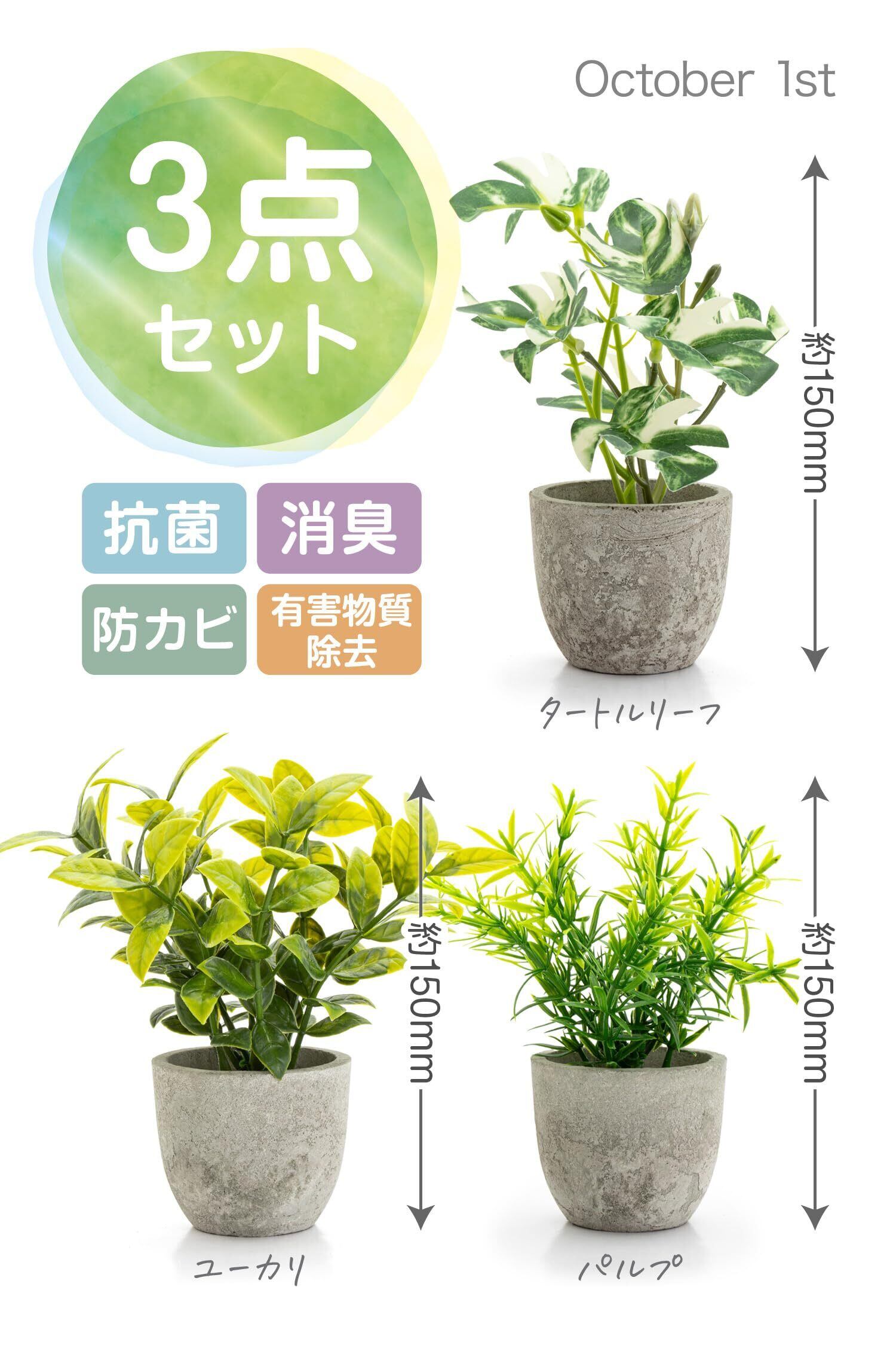 October1st フェイクグリーン 観葉植物 人工 3点セット 卓上用 光触媒加工 造花 インテリア 小物 ミニ indoor plants 人工植物 fake plant おしゃれ 緑 水やり不要 贈り物 ギフト 母の日 父の日 プレゼント