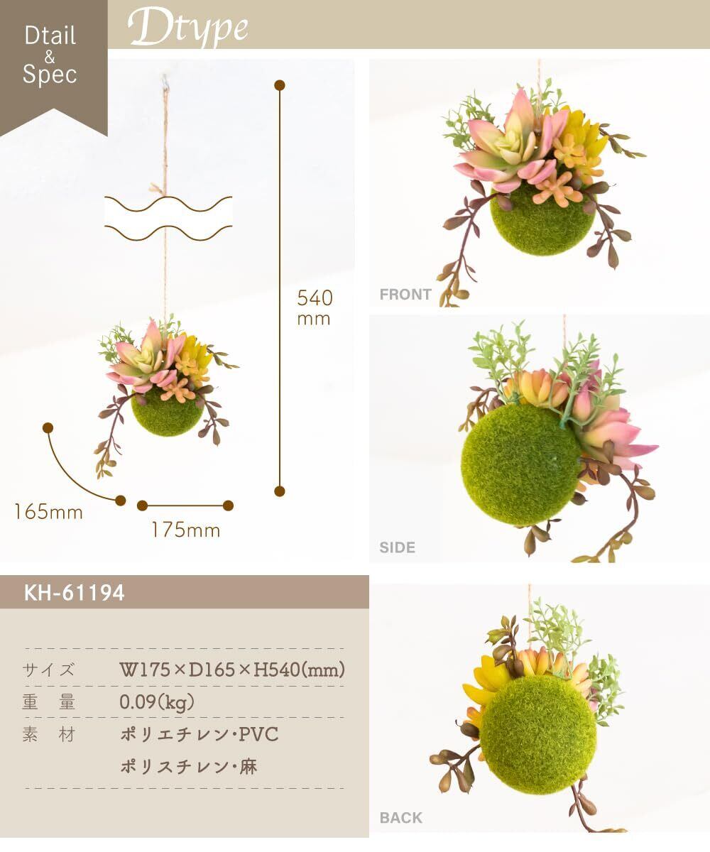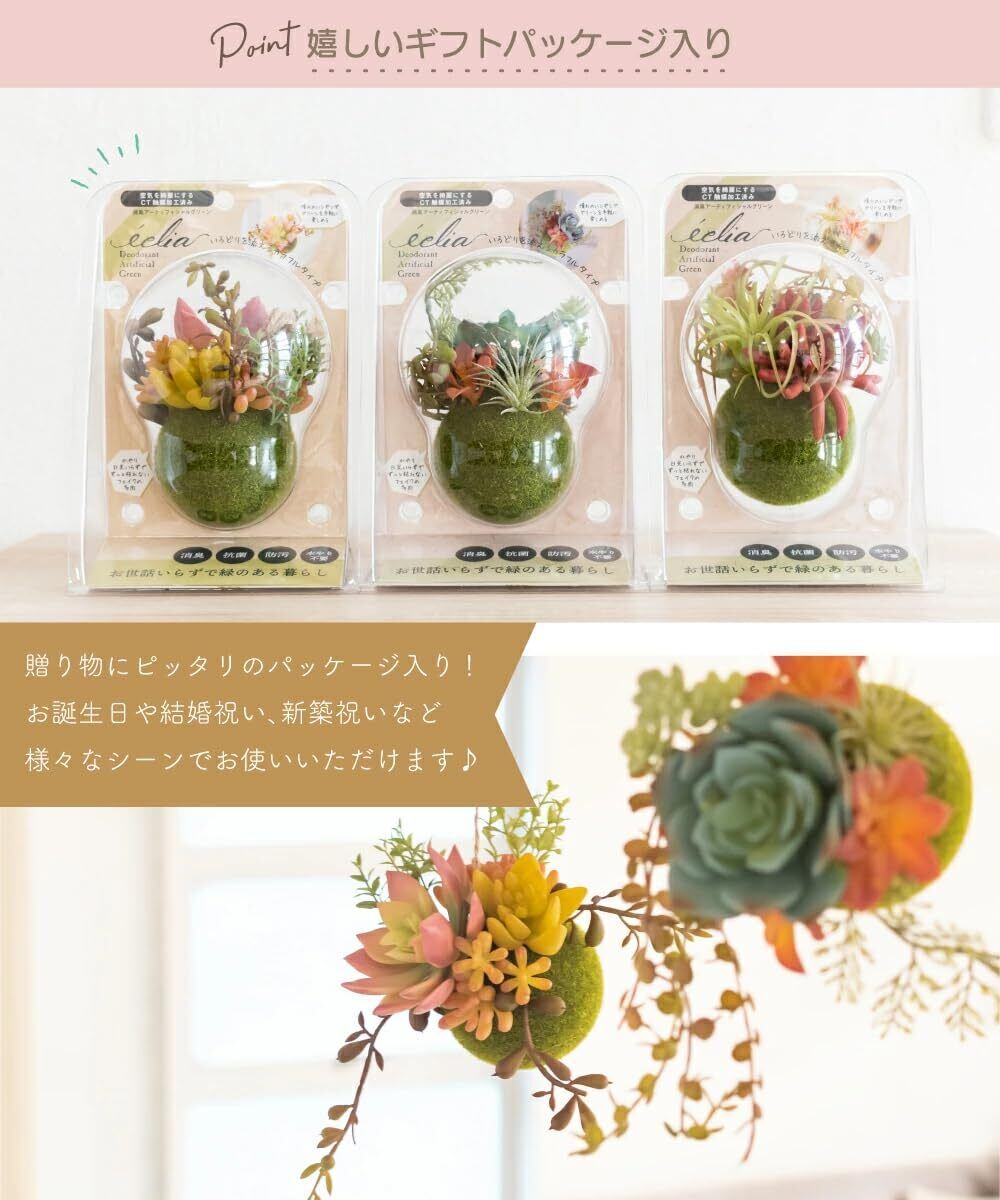【数量限定】フェイクグリーン ミニ 吊り下げ 消臭 多肉植物 苔玉 空気清浄 CT触媒 多肉ボール エクリア Sサイズ Dタイプ