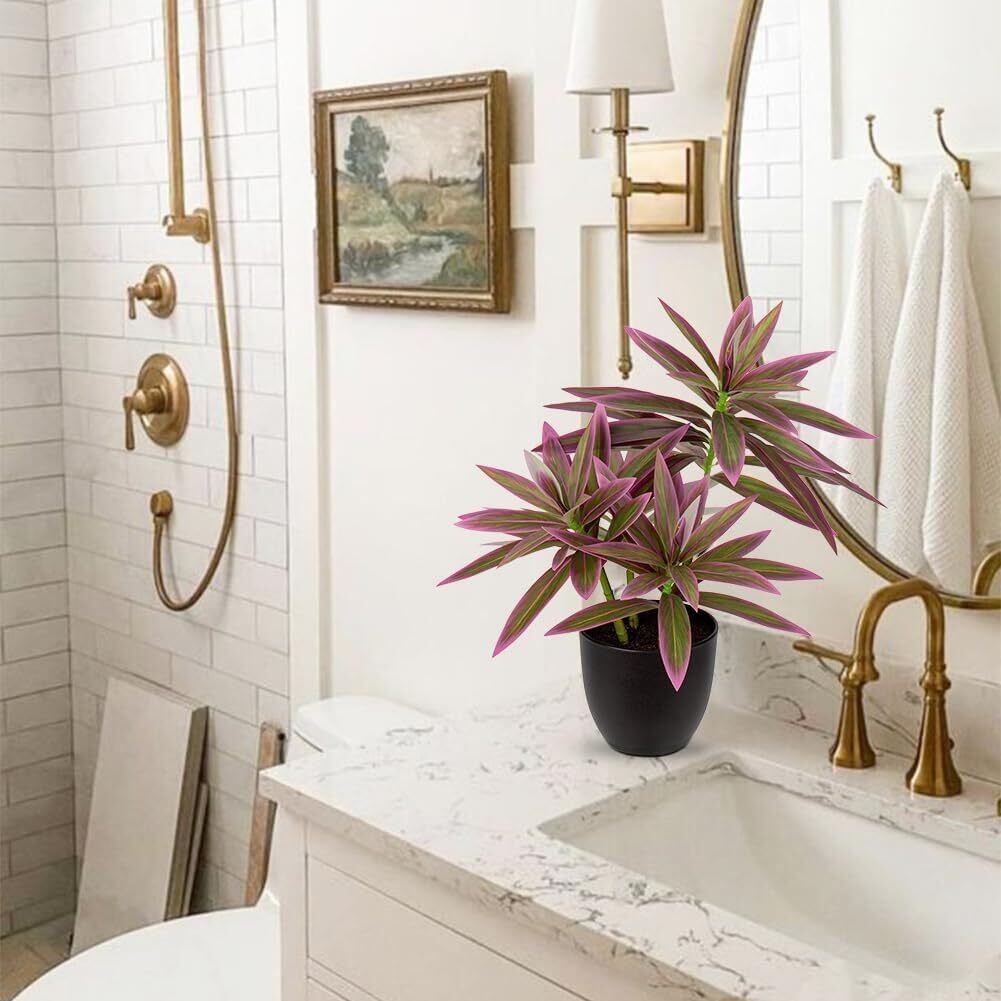 フェイクグリーン インテリアグリーン ユリ竹 人工観葉植物 盆栽 造花 室内 新築祝い 開店祝い 新年 クリスマス オフィス 店 卓上 おしゃれ (ピンク)