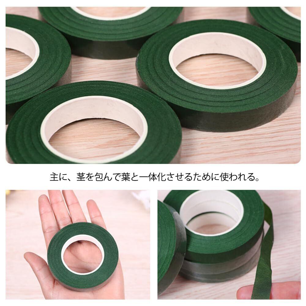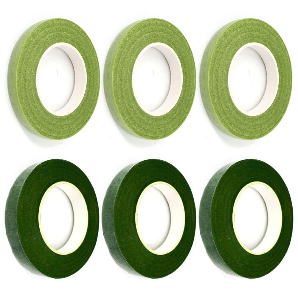 フローラテープ 造花テープ 幅12mm DIY 花芸飾りセット フローラテープ 花束 花屋 手芸(ダークグリーンx3、グラスグリーンx3)
