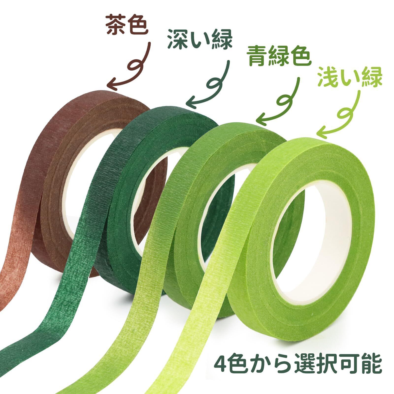 【造花テープ】花の茎や枝を巻くための専用テープです。フローラルテープは滑らかで柔軟な質感で、伸縮性と粘着性もがあり、簡単に巻くことができ、手で裂くこともできる。花や茎の花束、ブーケ、造花などに最適,花に自然で美しい外観を与えることができます。