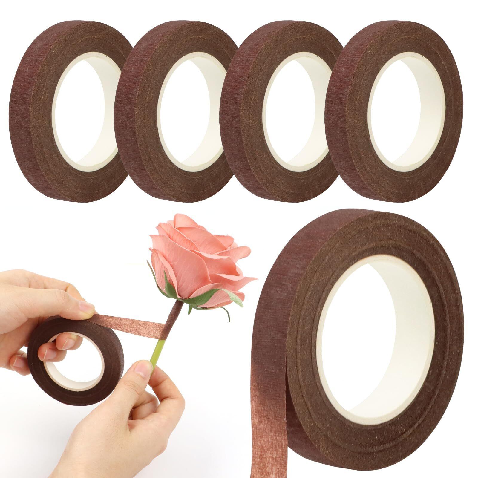 【新春セール】フラワーテープ 茶色 4巻入 長さ30m 幅さ12mm 造花テープ 手芸モール モールフラワー DIY手作り 手芸用 記念日/誕生日/母の日/バレンタインデー贈り物 (4巻入 茶色)