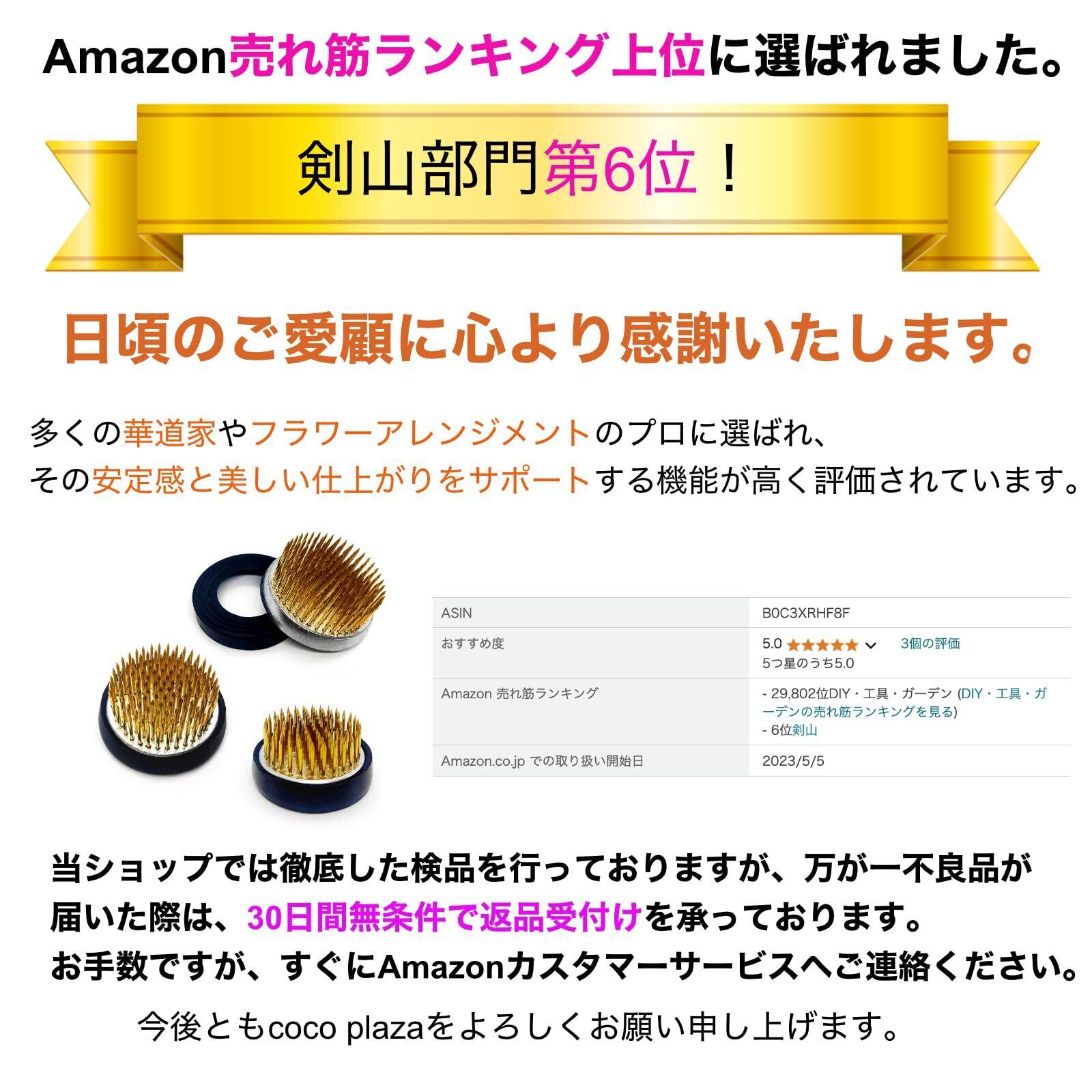 【高密度のステンレス製針】この剣山はあらゆる花材に対応。針の配置が高密度で細かい花から太い枝物までしっかりと支え、安定した生け花を実現します。高密度の針が繊細な表現も可能にし、生け花のクオリティを向上させる理想的なアイテムです。素材はステンレスで錆びにくく耐久性が高いのが特徴です。