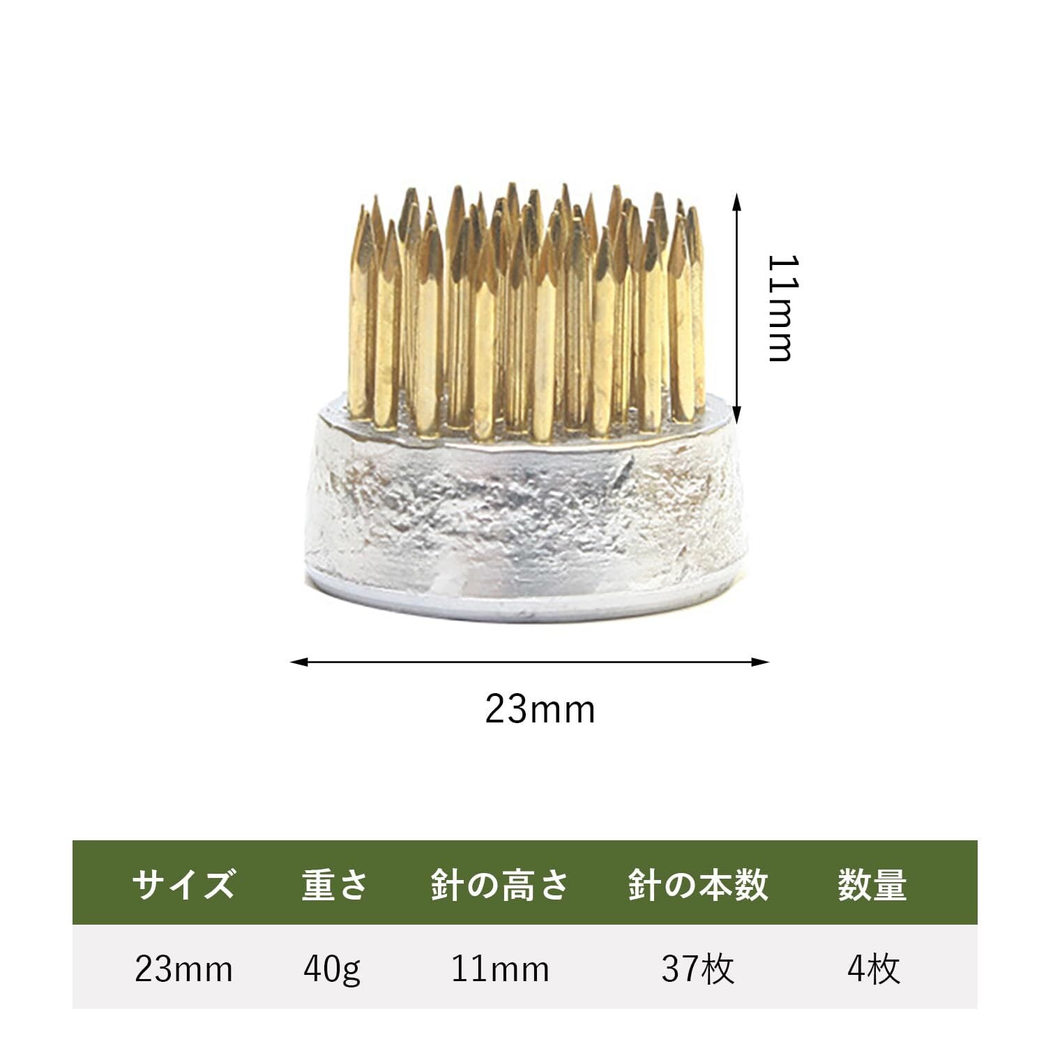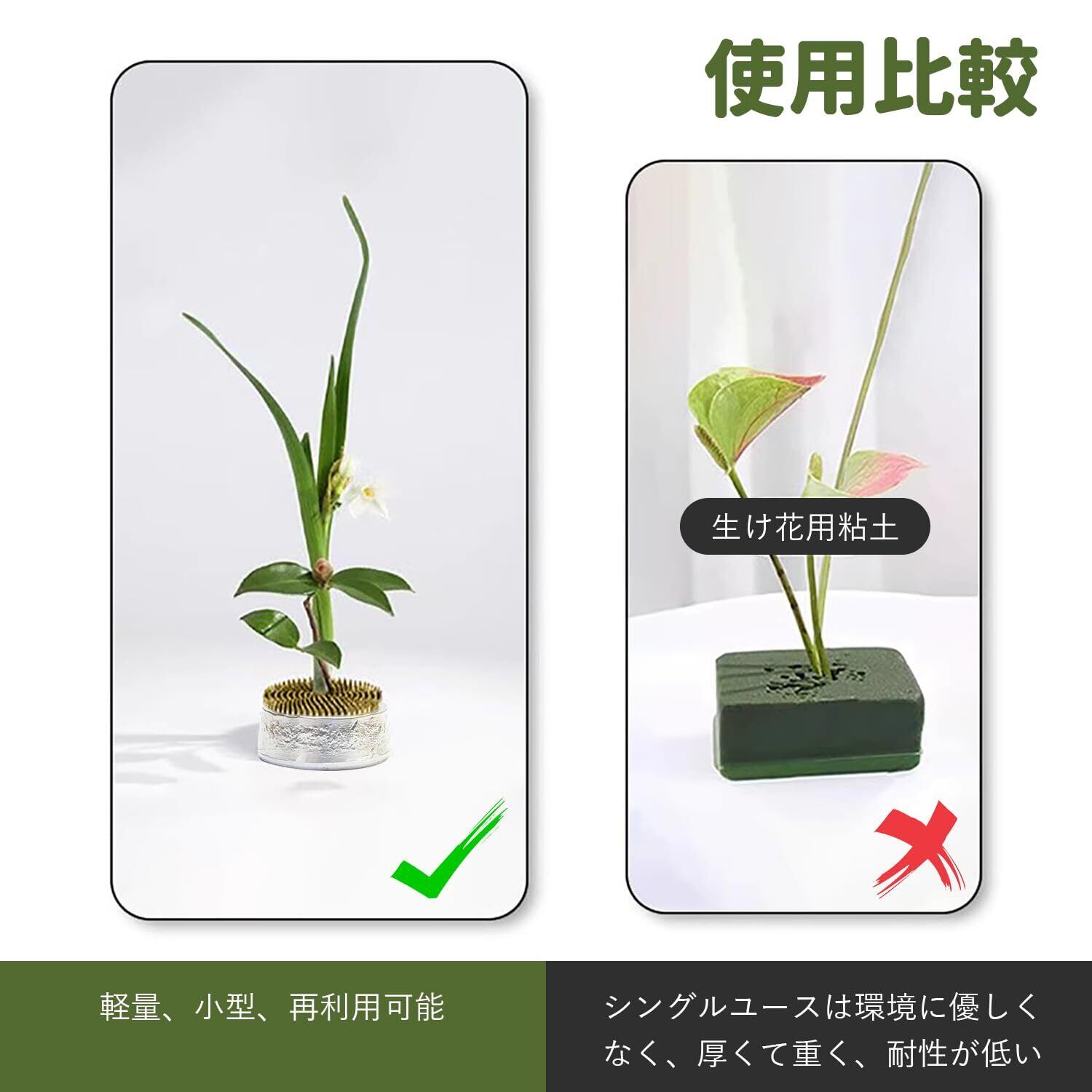 【高品質な素材と耐久性】剣山 生け花フラワーアレンジメントは、通常、鉛錫のベースと鋳造銅またはステンレス鋼のピンで作られており、丈夫で耐久性があるだけでなく、錆びたり損傷することは容易ではありません。 また、Kensanは繰り返し使用することができ、頻繁に交換することなく長期間保つことができるため、使用コストを削減することができます。