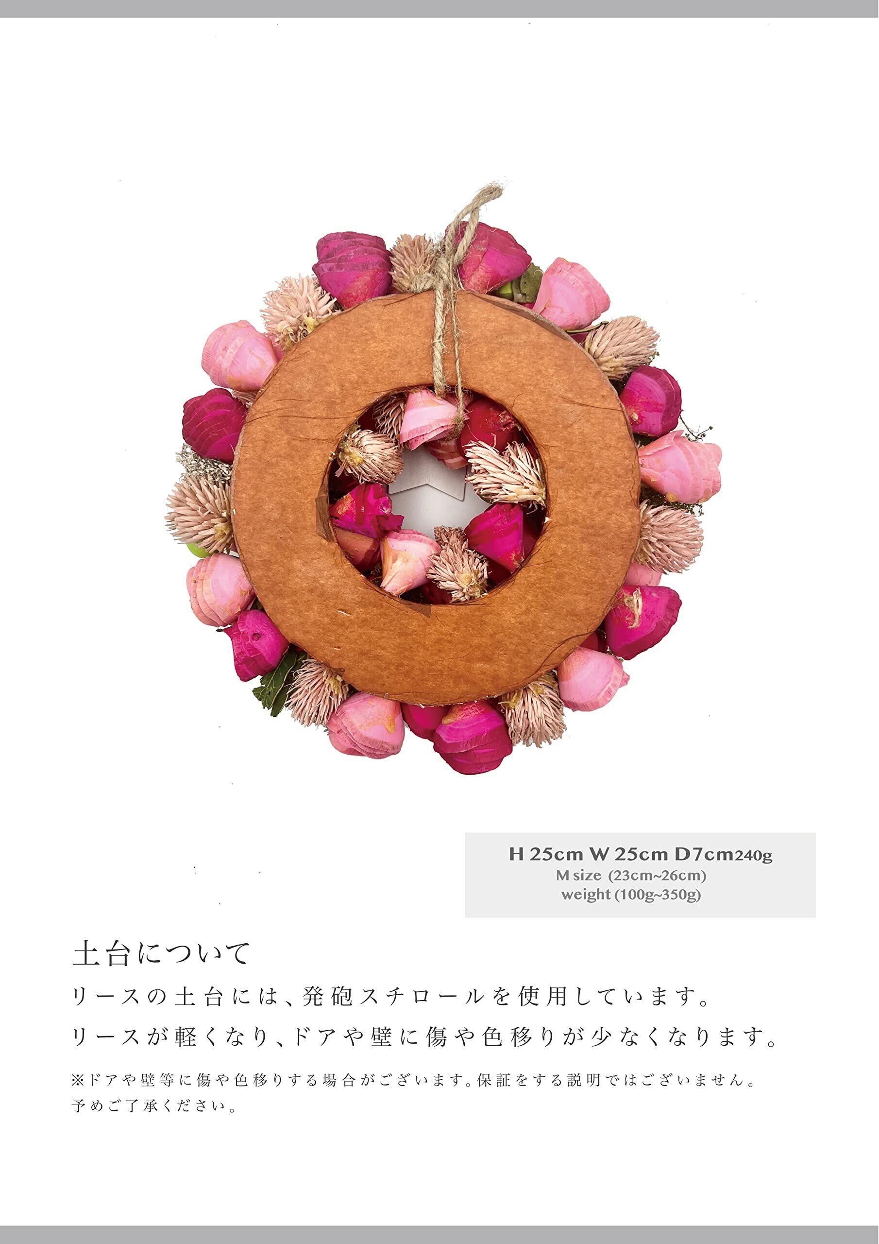 [ 2026年 mamawreath 包装済 C ] 母の日 花 ギフト プレゼント フラワーギフト 春リース 玄関用 ピンク色 レッド色 永遠の意味 Mサイズ:25cm(直径)×6cm(厚み) (ビビッドピンク (WR-13KG-MP))
