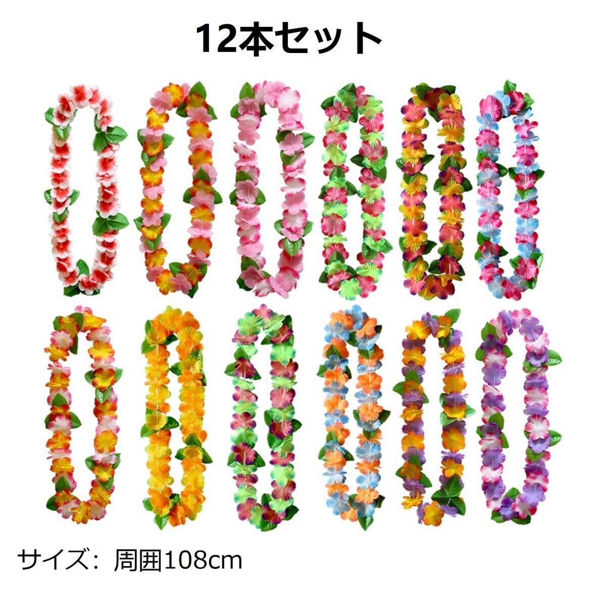 siawadeky ハワイ花輪 首飾り 12カラー 12本セット 花ネックレス 人工花 カラフル ガーランド 髪飾り 首掛け 衣装アクセサリー 結婚式 宴会飾り 誕生日 お祝い フラワーレイ ハワイレイ ビーチフラ パーティー用