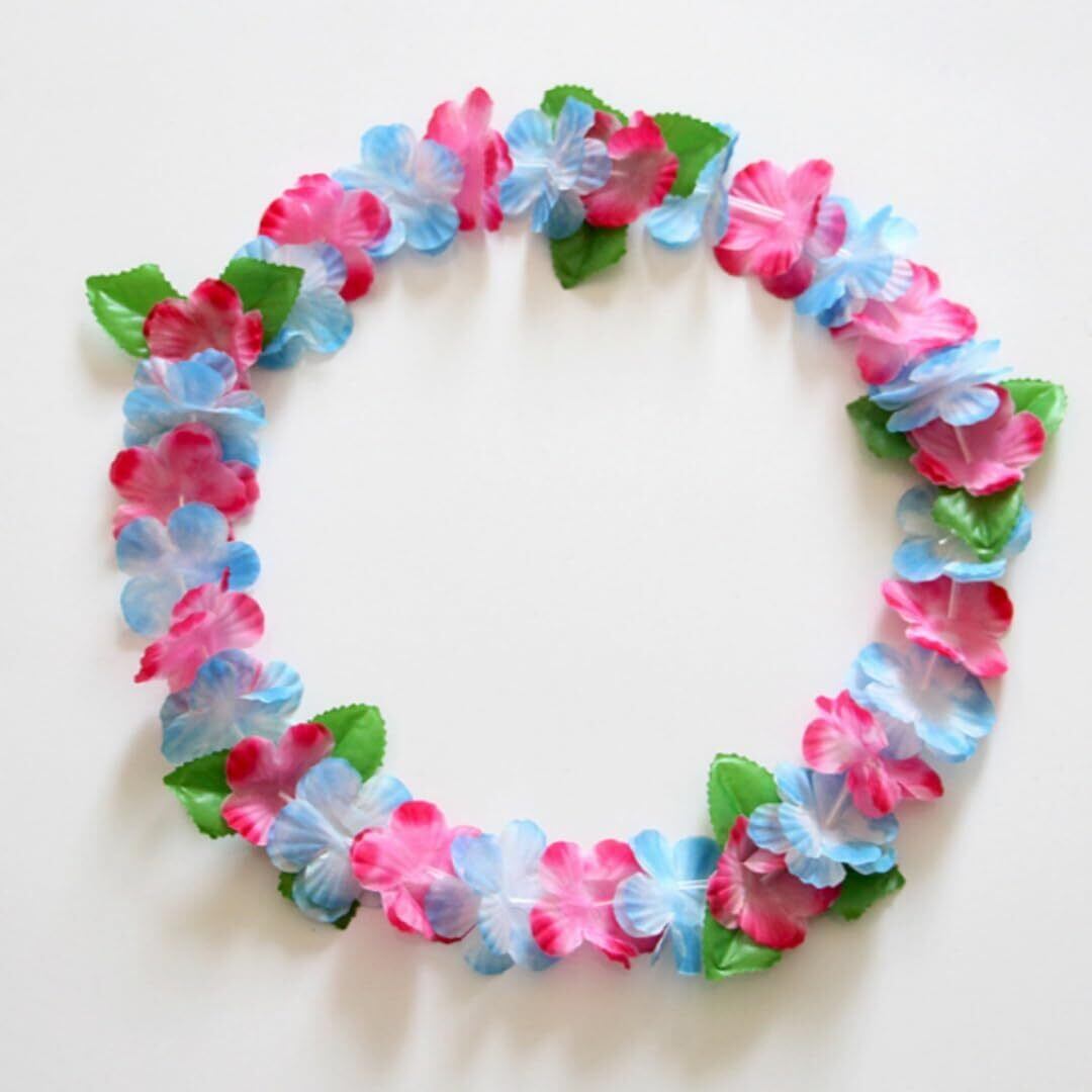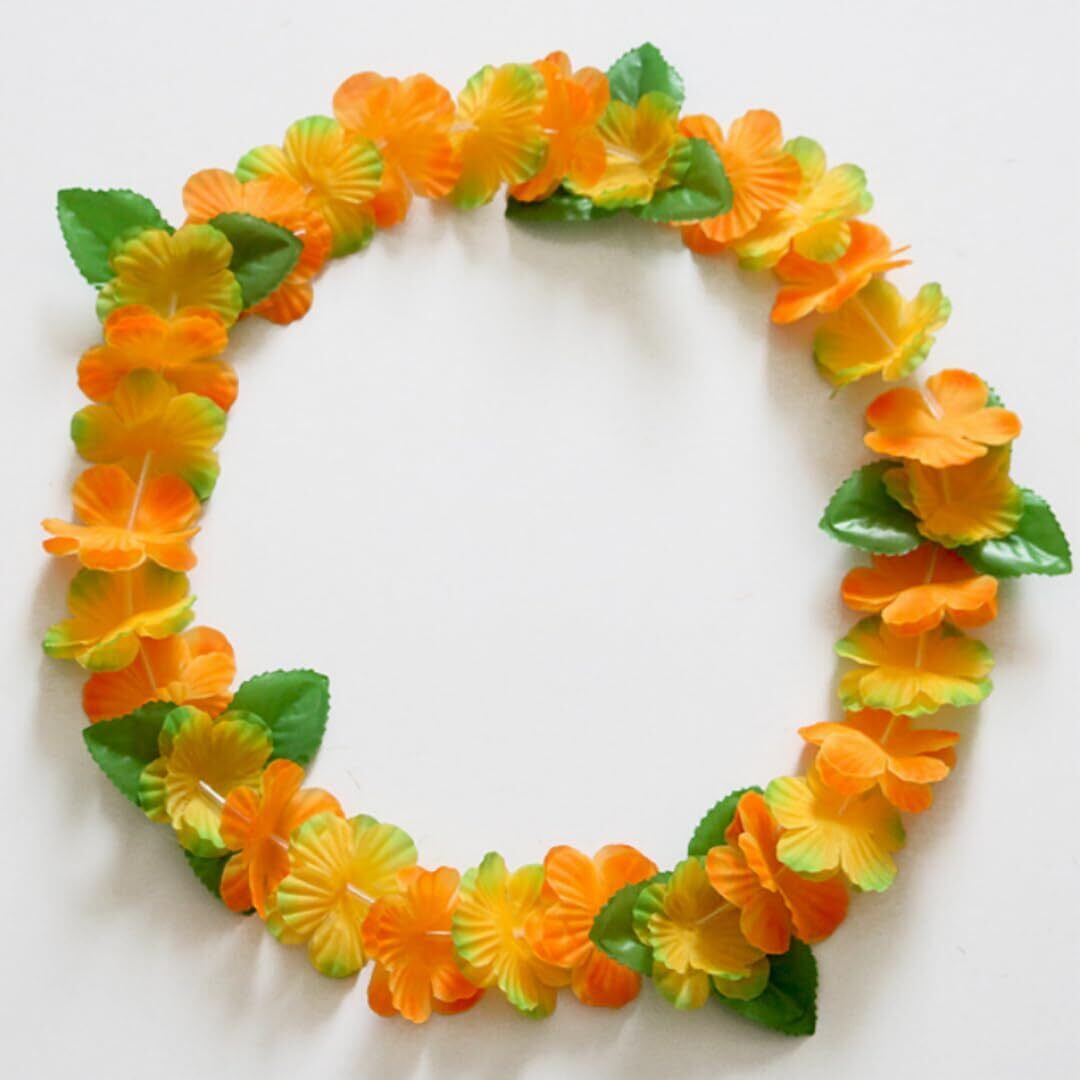 「ハワイスタイル」このハワイ花輪は、カラフルな花びらを使用しており、ハワイの明るく陽気な雰囲気をそのまま再現しています。それぞれの色が鮮やかで、パーティーやイベントでのアクセサリーとして最適です。ハワイアンリゾート気分を手軽に楽しむことができます。