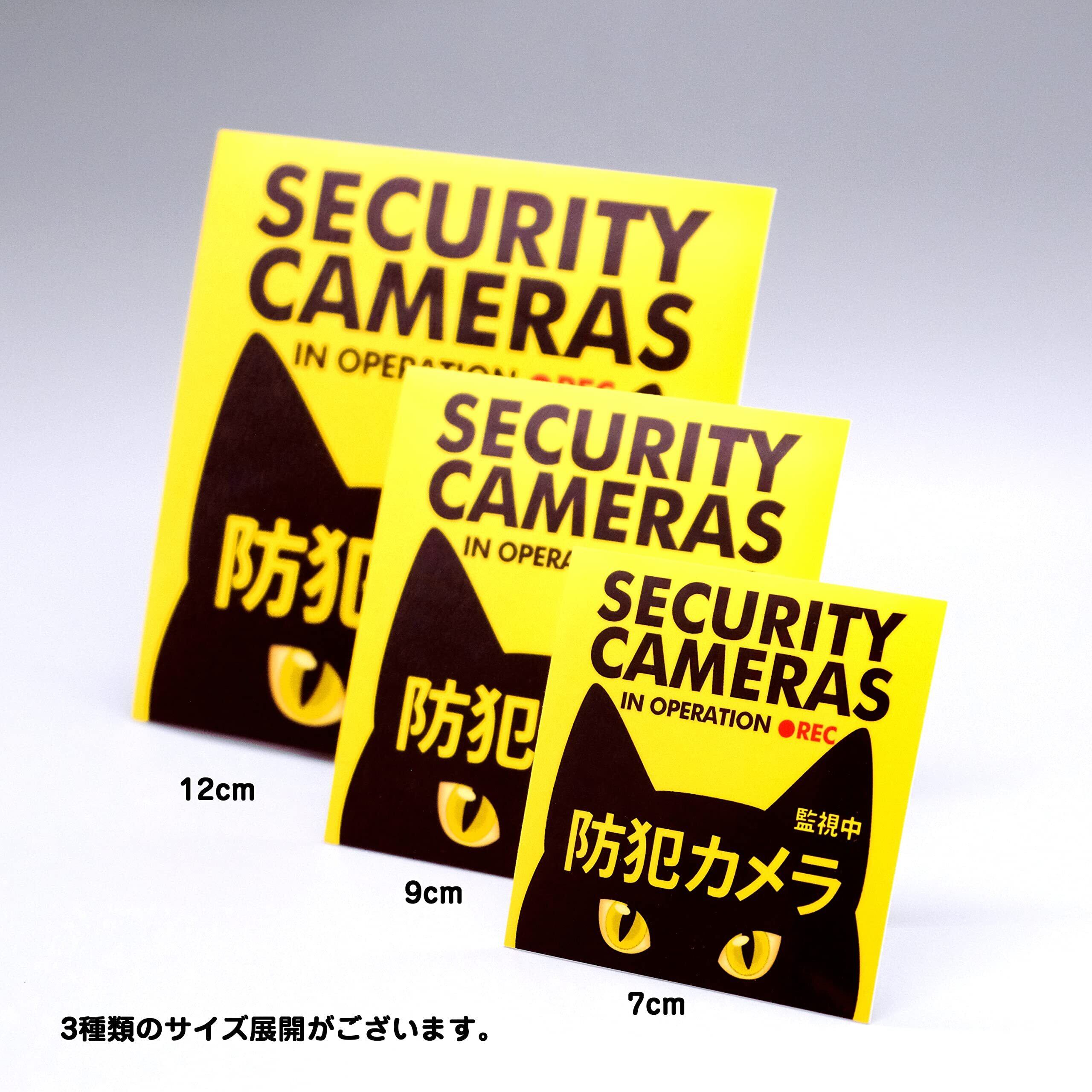 防犯ステッカー 防犯カメラ 監視中 黒猫 耐候・耐水 7cm 3枚セット