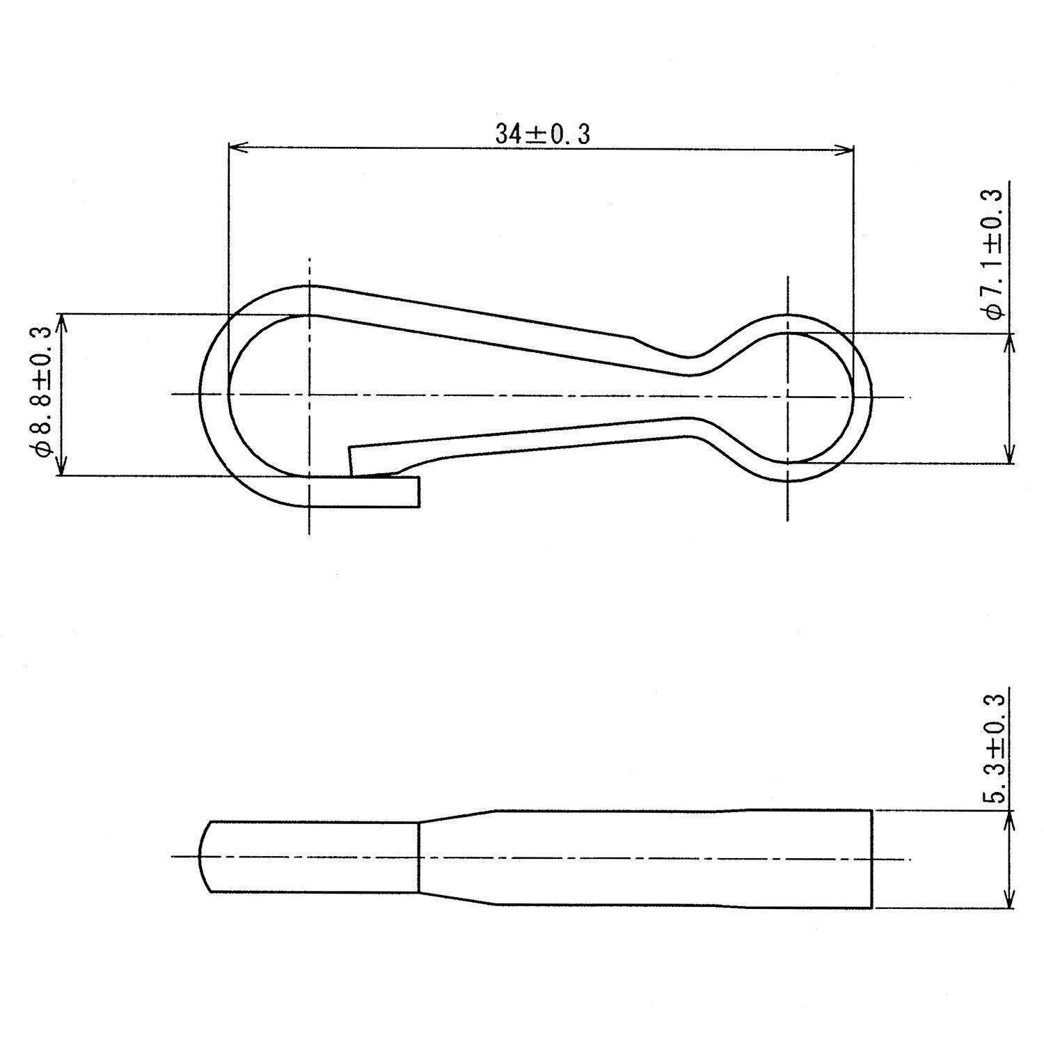 スナップ外寸:長さ約36mm・幅最大部約10mm・フック部開口有効サイズ約5mm