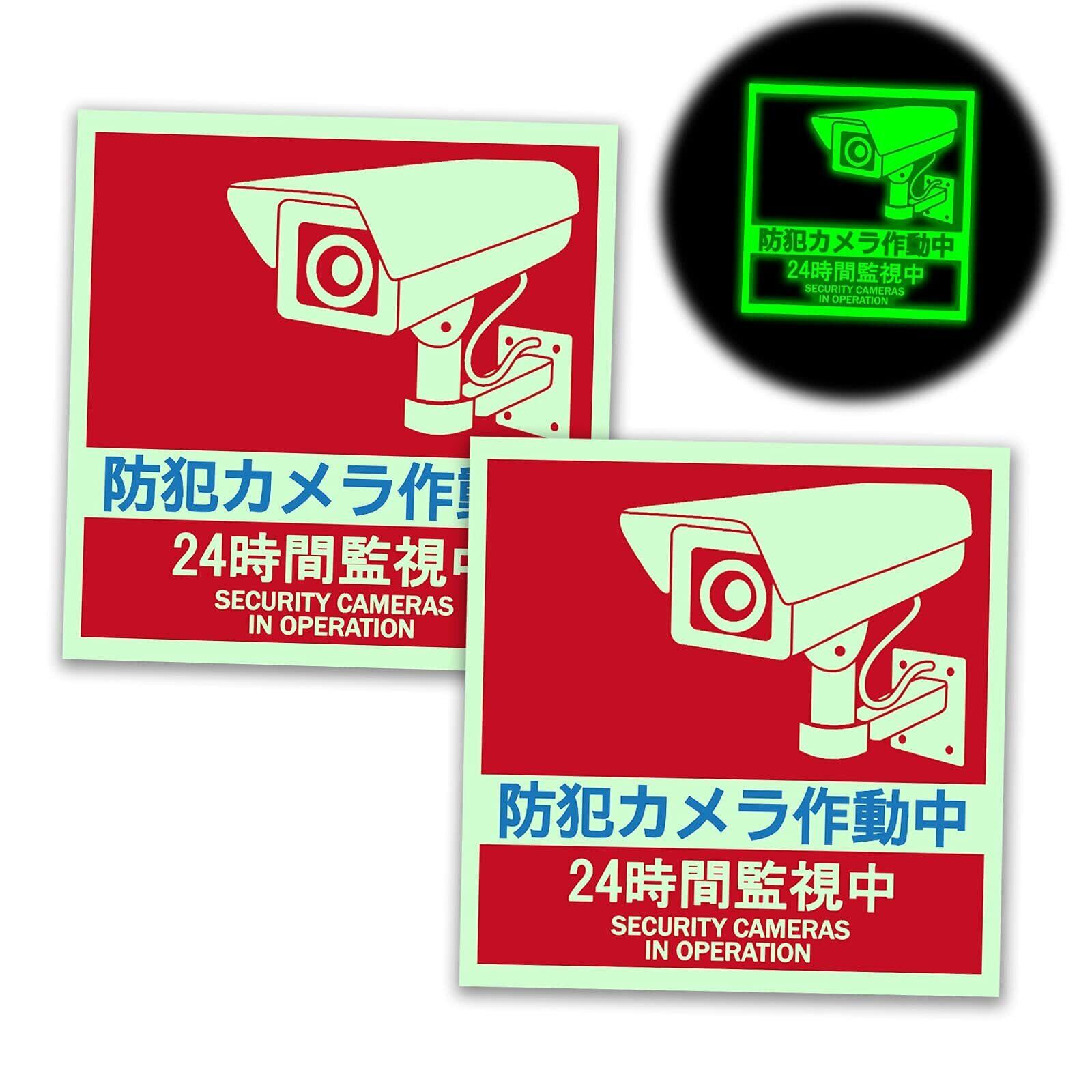 セキュリティーステッカー 防犯カメラ作動中 耐水耐光 (蓄光タイプ 2枚)