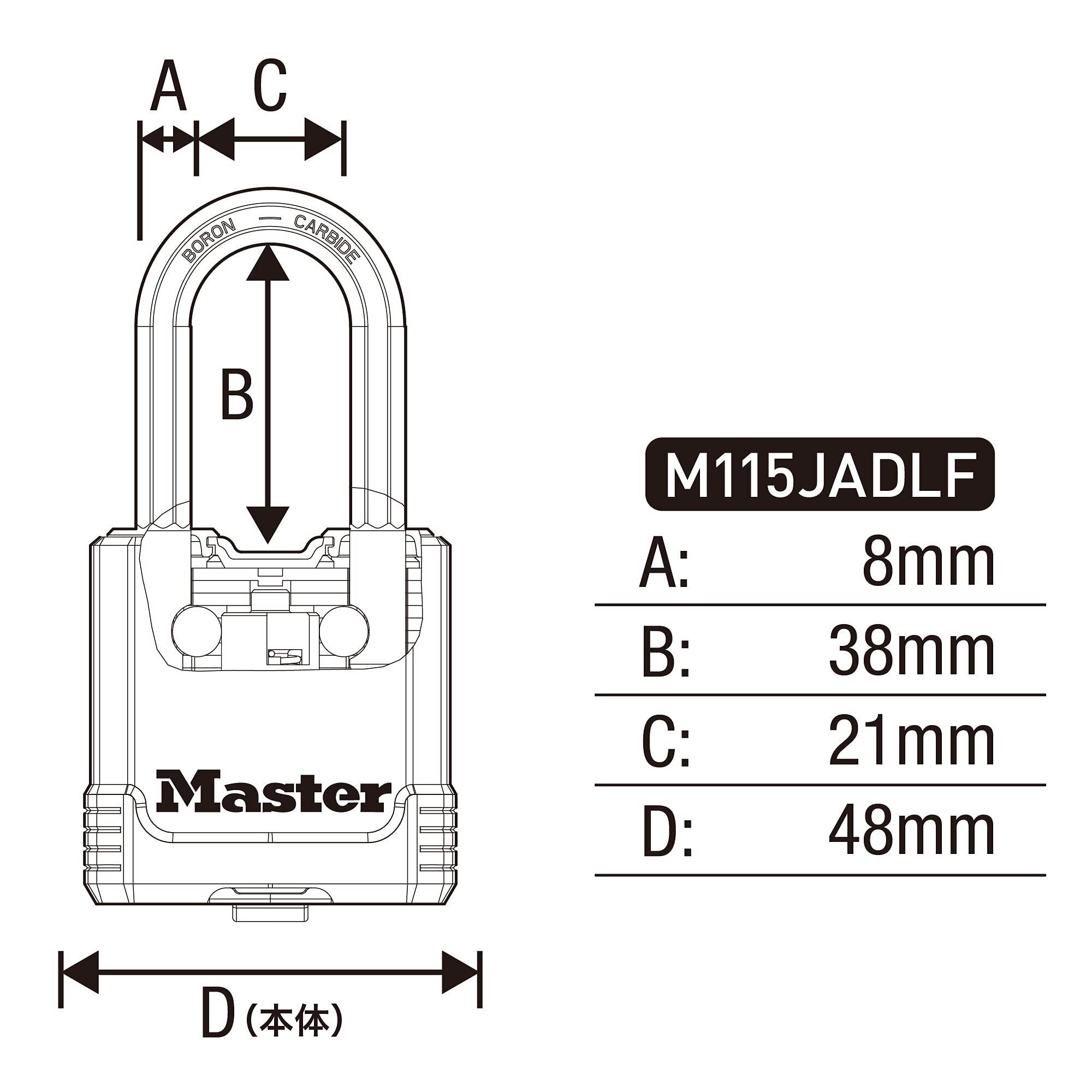 【数量限定】Master Lock (マスターロック) 南京錠 鍵式 プロ仕様 防錆 屋外 カバー付 ハイセキュリティ 本体幅48mm 吊高内径38mm 防犯 マグナム M115JADLF