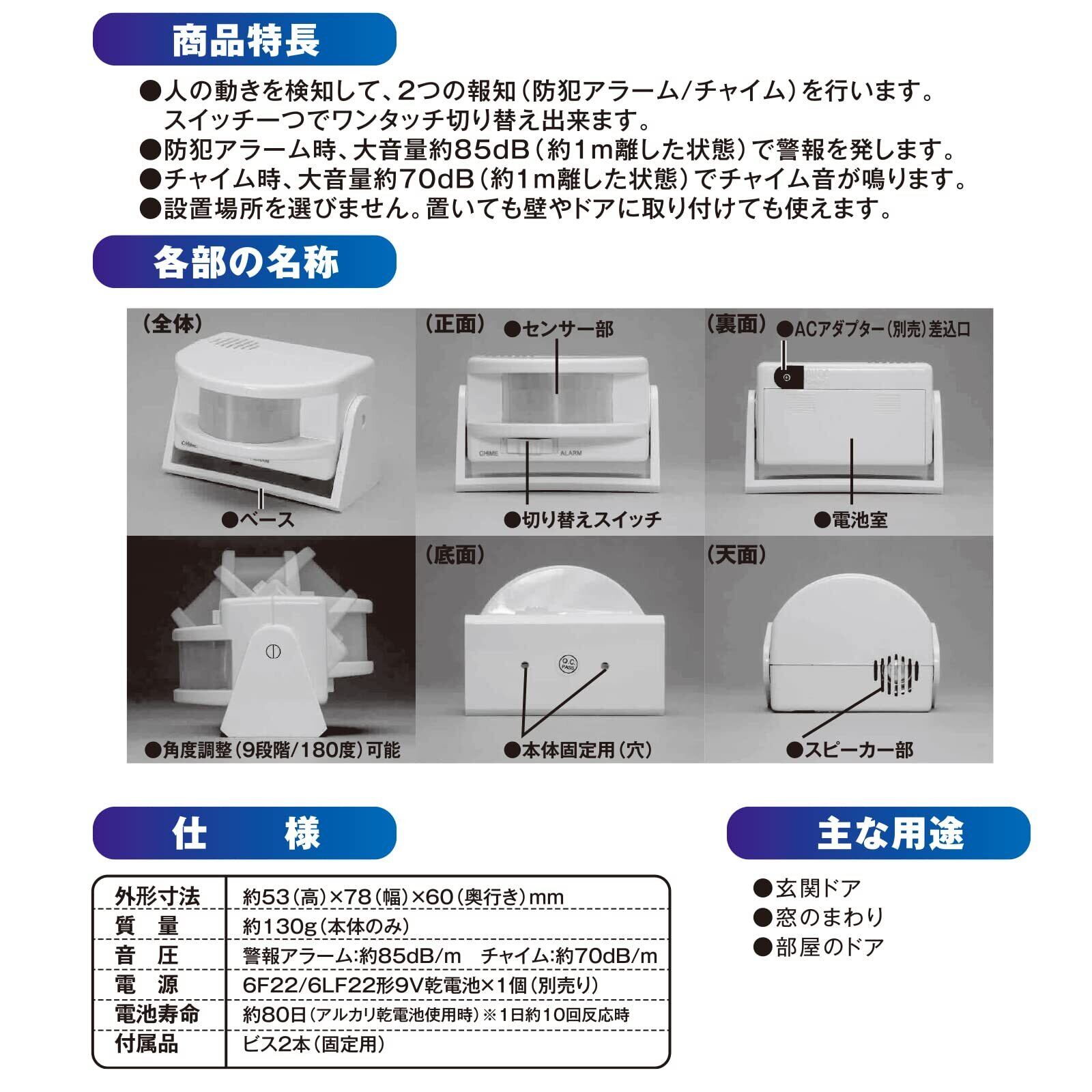 OHM センサー付きチャイム&アラーム SEC-001S