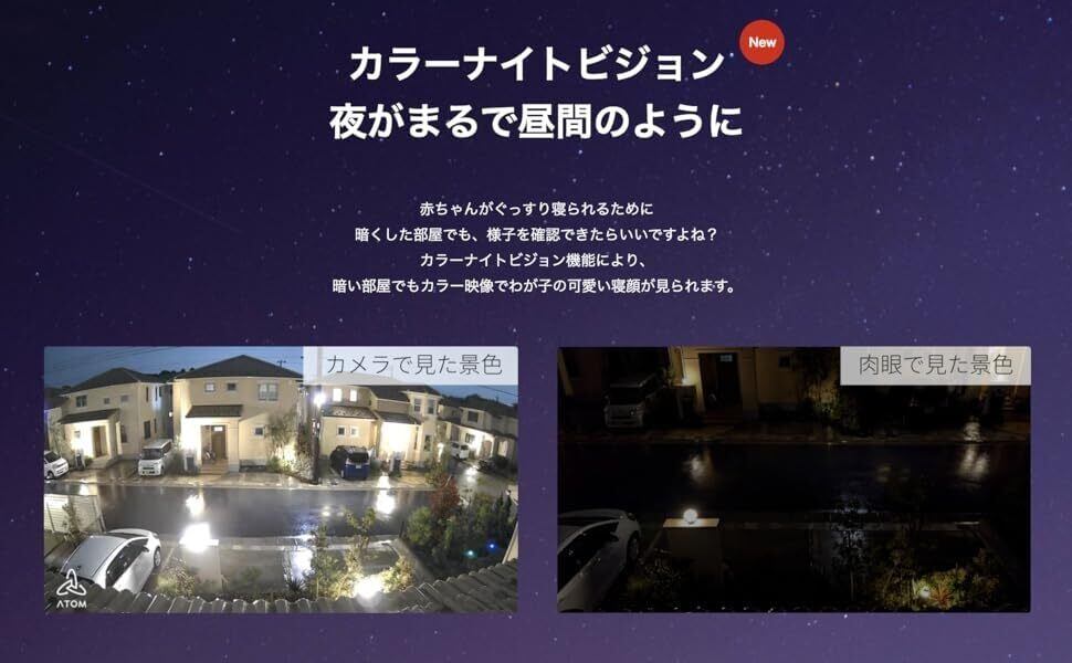 「こどもが初めて歩いた瞬間」「ペットの起こすハプニング」「めったに見ることのできない自然現象」などなど、起きてからカメラを向けるともう遅い、そんなおもしろい瞬間や楽しいことを「ATOM Cam」は撮り続けることができます。