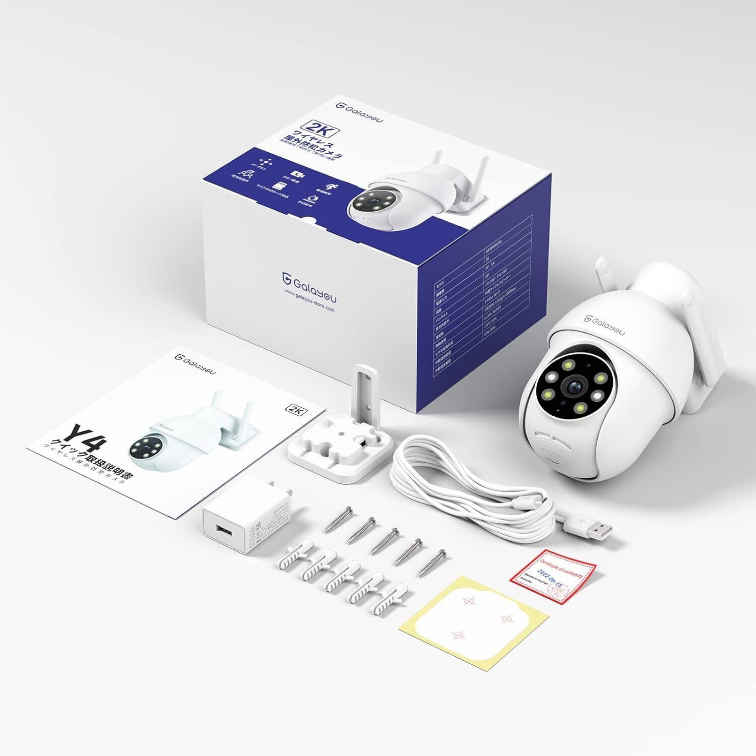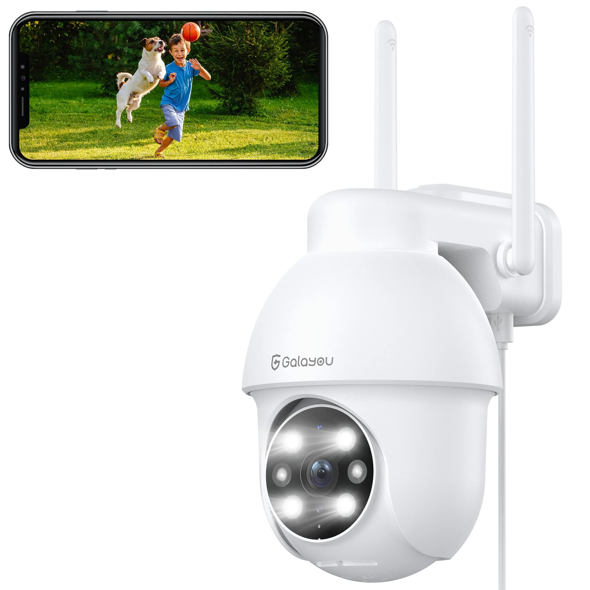 Galayou Y4 2K/3MP屋外防犯カメラ:常時録画ネットワークカメラ、カラー暗視、IP65防水監視カメラ、2.4Gwifiワイヤレス接続、 動体検知、声光警報、センサーライト搭載、発光LED、遠隔操作、双方向音声、PTZパンチルト、家族共有、Alexa対応、マイクロSDカード録画&クラウドストレージ対応 アプリ無料
