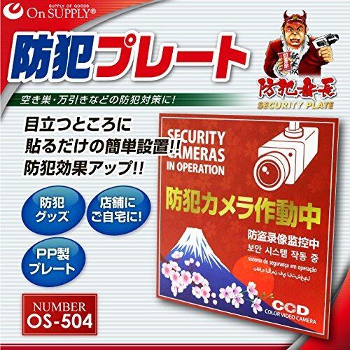 ■防犯プレートの利点・効果 1)低コスト&高パフォーマンスで扱いやすいから手軽に防犯対策ができます。 2)防犯意識の高さをアピール、必然的に防犯効果が高まります。 3)防犯装置が設置されていなくても侵入者への威嚇効果があります。 4)実際に防犯装置を設置されている場所では、更なる犯行意欲減退効果あり。 5)防犯ダミーカメラ等と一緒にご使用になると更に効果的です。